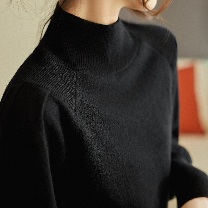 セーターニット 春服 レディース ハイネック トップス タートルネック 長袖 ゆったり 体型カバー シンプル パフスリーブ 無地 通勤 柔らかい
