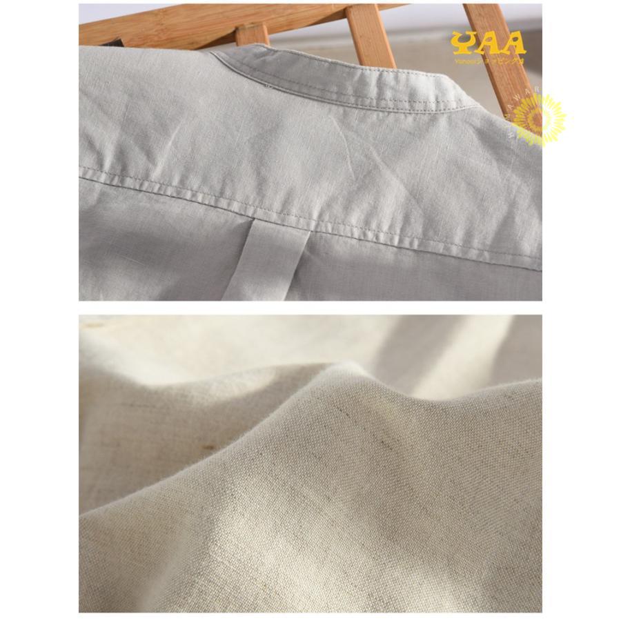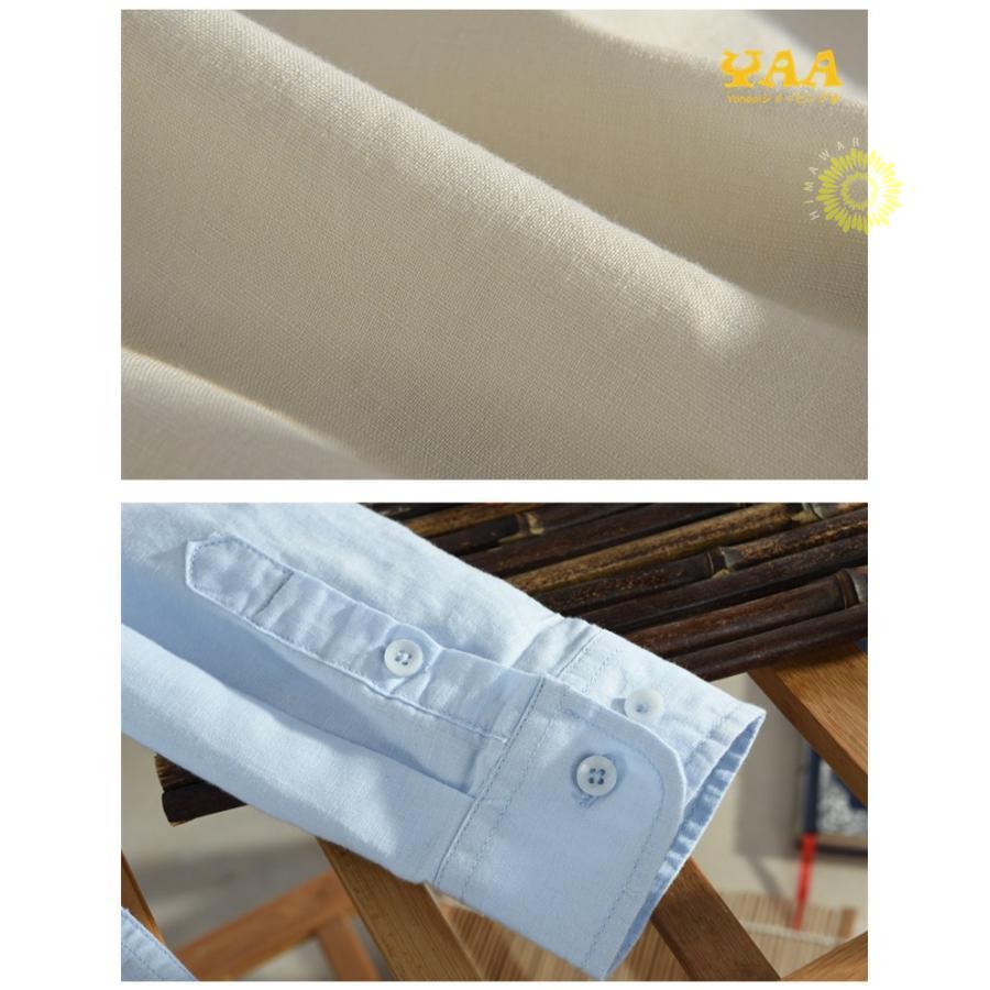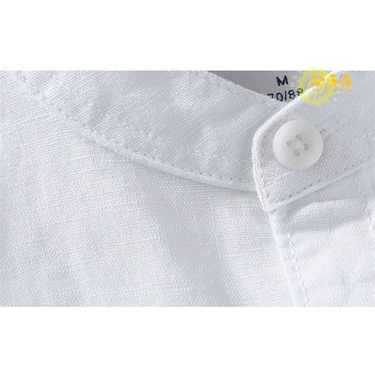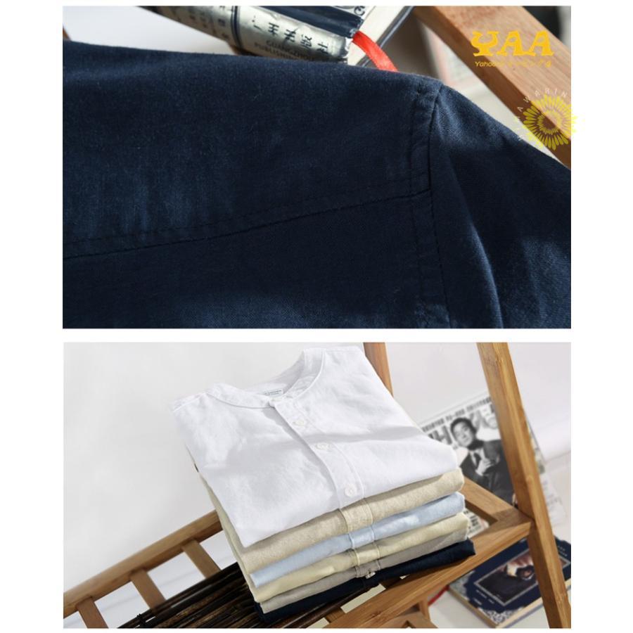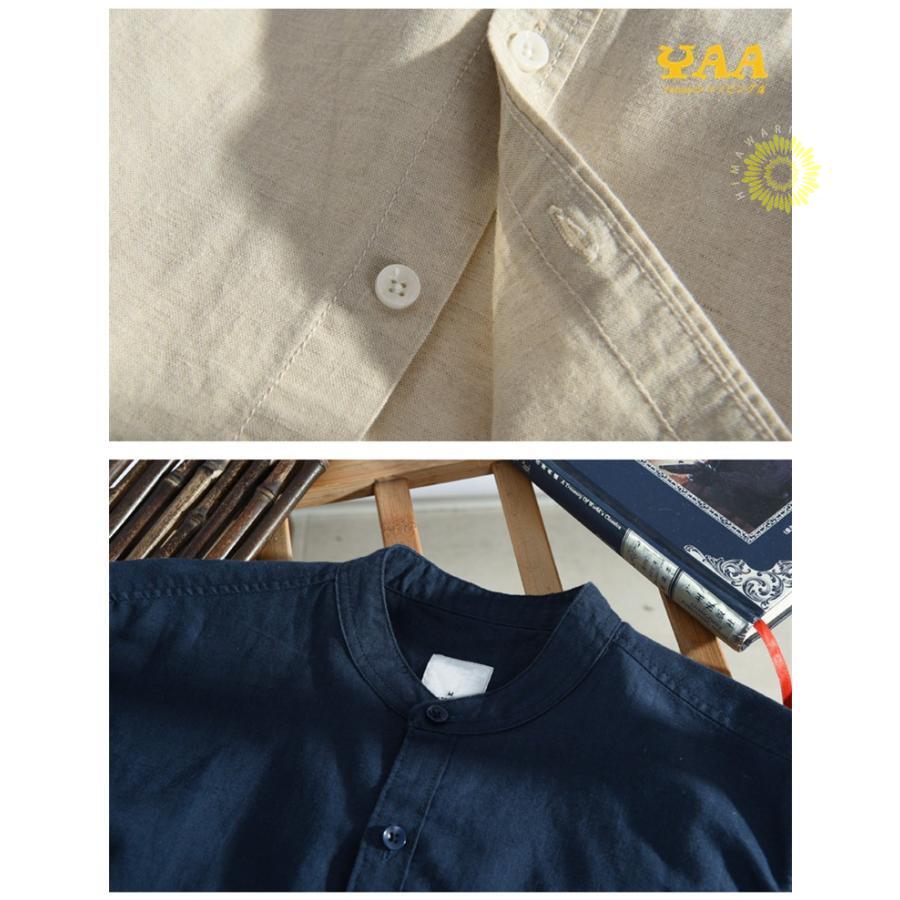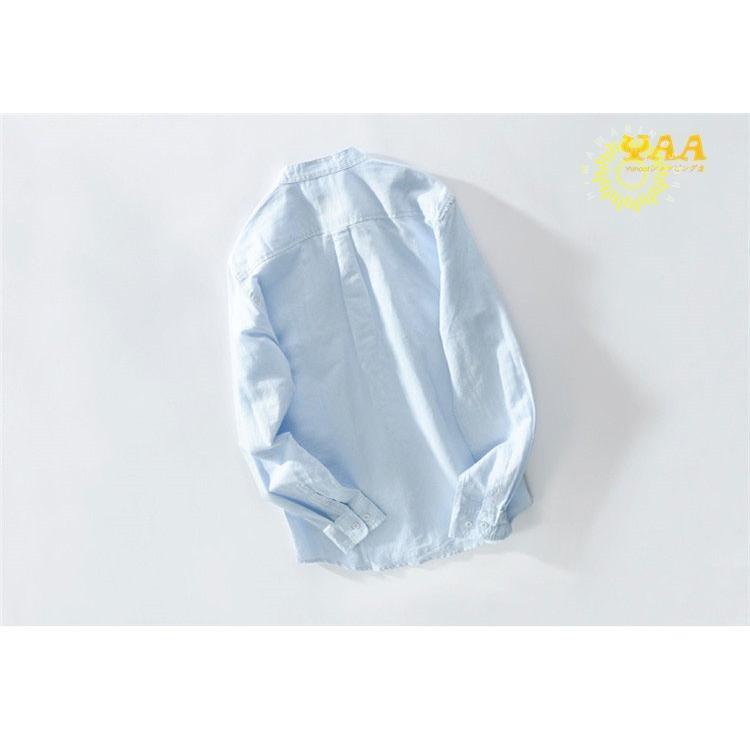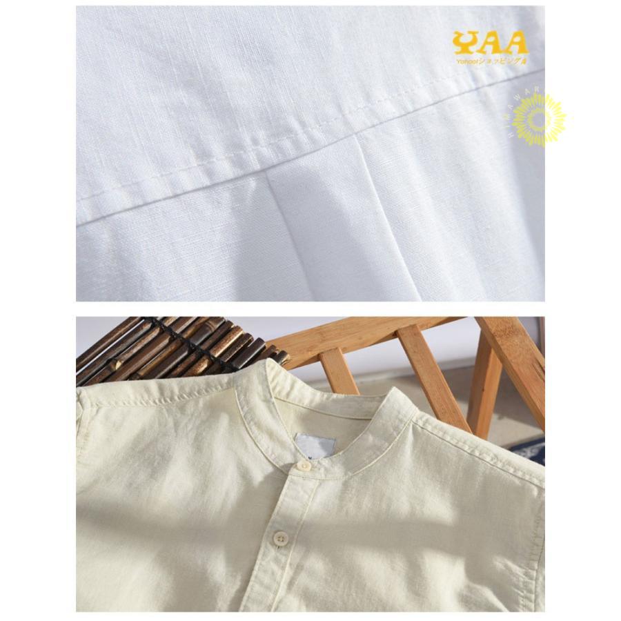 カジュアルシャツ メンズ シャツ 長袖 綿麻シャツ リネンシャツ 白シャツ ホワイトシャツ ワイシャツ バンドカラー ロールアップ 父の日