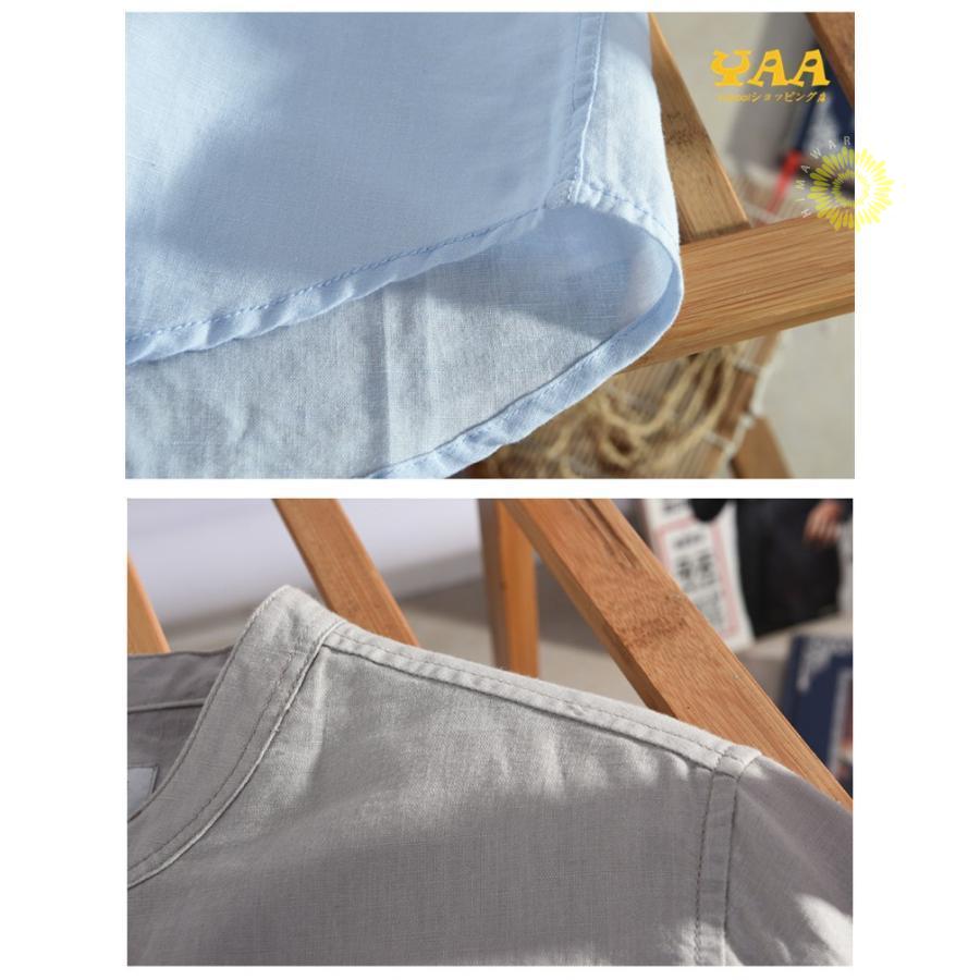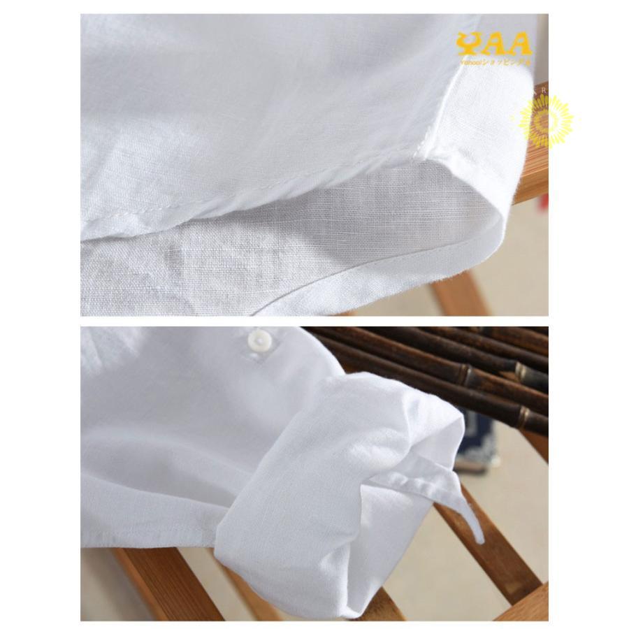 カジュアルシャツ メンズ シャツ 長袖 綿麻シャツ リネンシャツ ワイシャツ 開襟シャツ ロールアップ 白シャツ