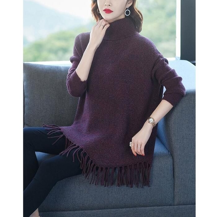 ウール混 トップス ニット セーター タートルネック フリンジ ハ おしゃれ 長袖 ナチュラル 大人 きれいめ 可愛い レディース カジュアル 体型カバー ゆったり