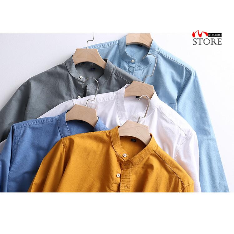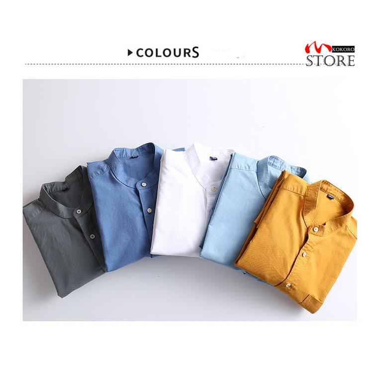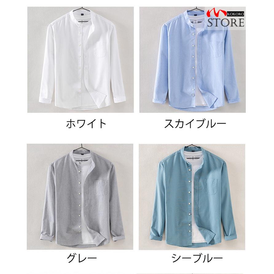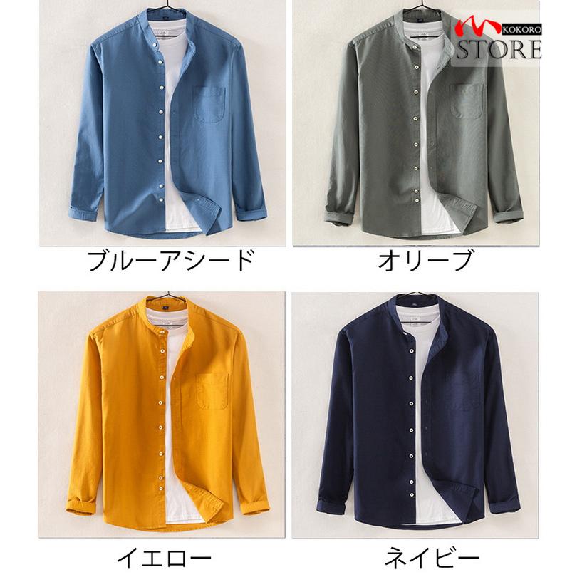 バンドカラーシャツ メンズ 長袖 シャツ カジュアルシャツ トップス 無地 スタンドカラー ビジネスカジュアル 40代 50代 60代