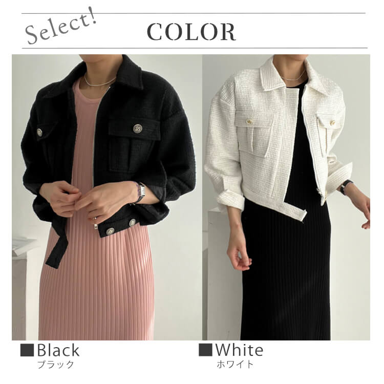 コート レディース 韓国 ブルゾン ジャケット ツイード アウター ショート丈 長袖 エレ フェミニン ツイードチェック おしゃれ