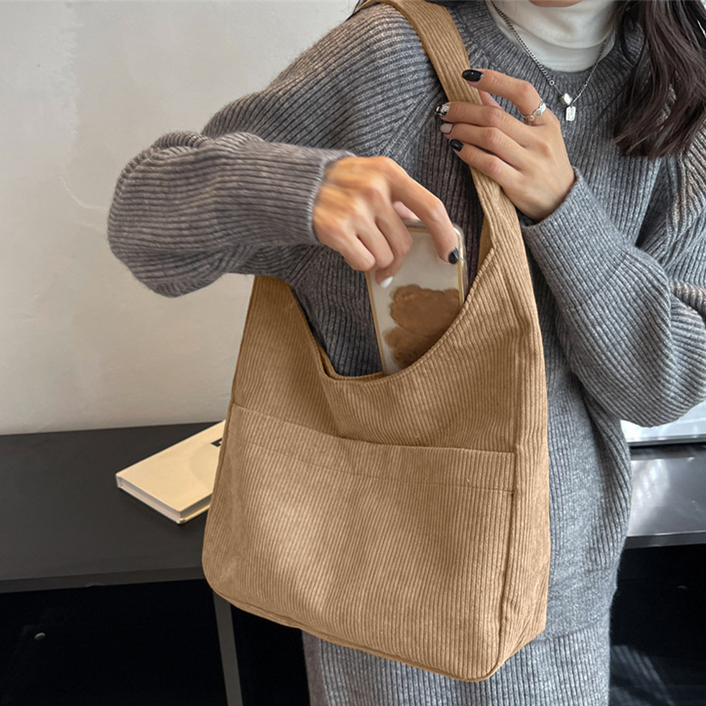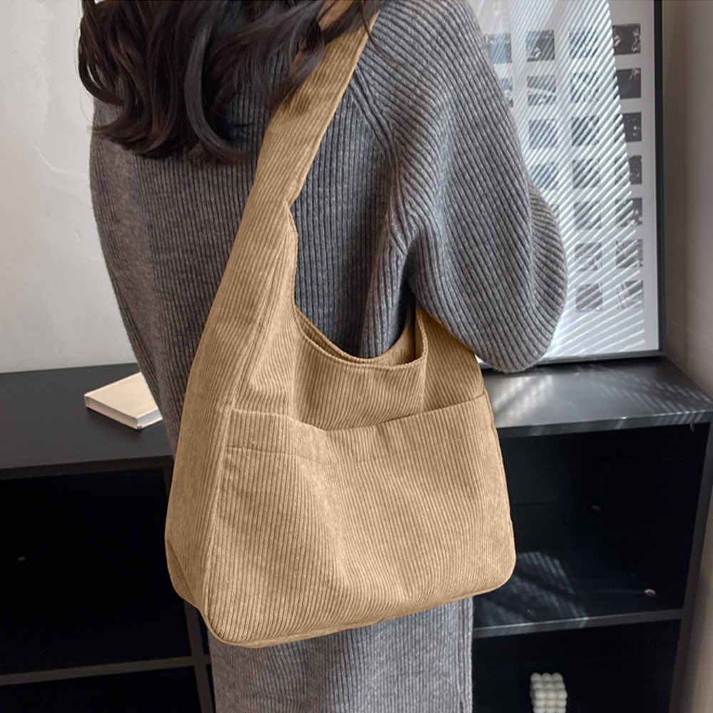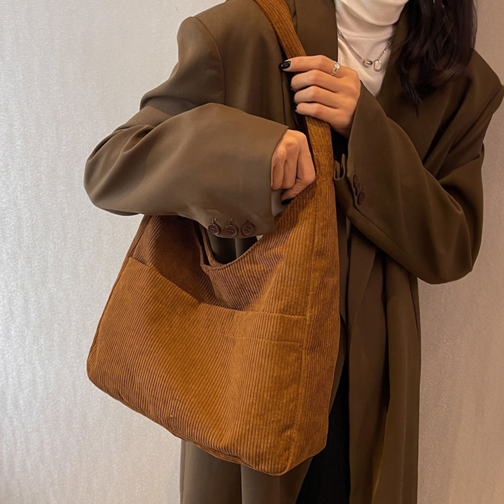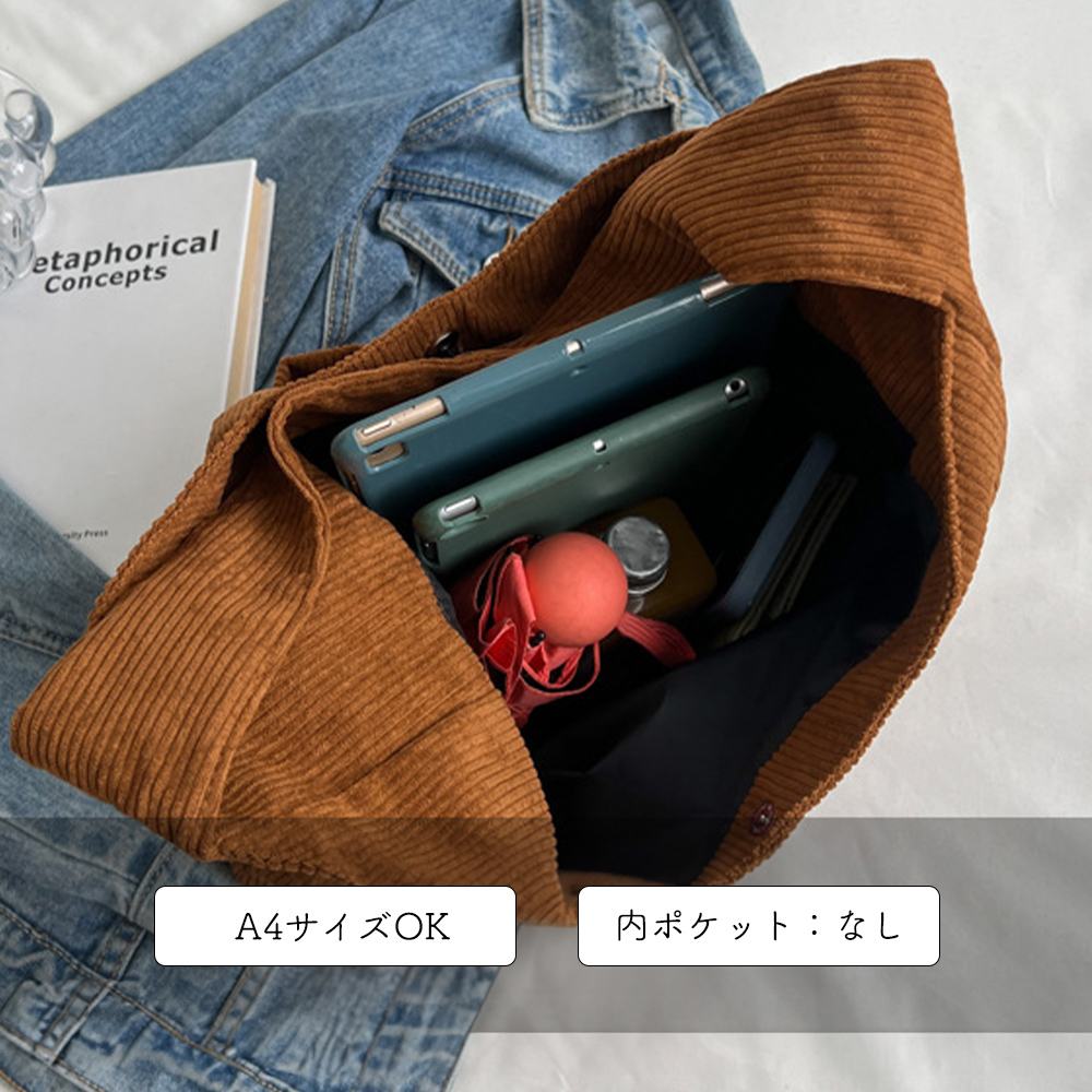 トートバッグ コーデュロイ 無地 肩掛け 。可