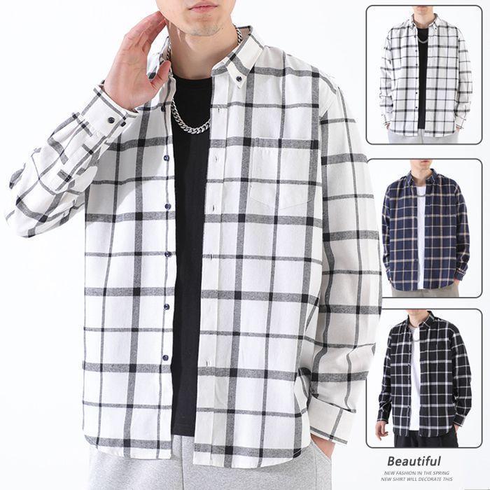 チェックシャツ シャツ トップス チェック柄 メンズ カジュアルシャツ 長袖 長袖シャツ 無地 カジュアル ベーシック