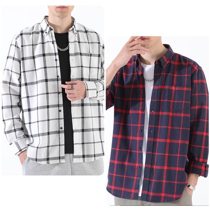 チェックシャツ シャツ トップス チェック柄 メンズ カジュアルシャツ 長袖シャツ 長袖 カジュアル 無地 ベーシック