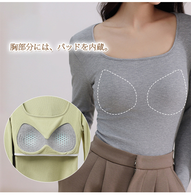 インナー レディース 保温下着 カットソー 長袖 カップ付き 通勤 秋冬 肌着 温かい 薄手 暖かい アンダーウェア 無地 OL パッド付き 日常 防寒