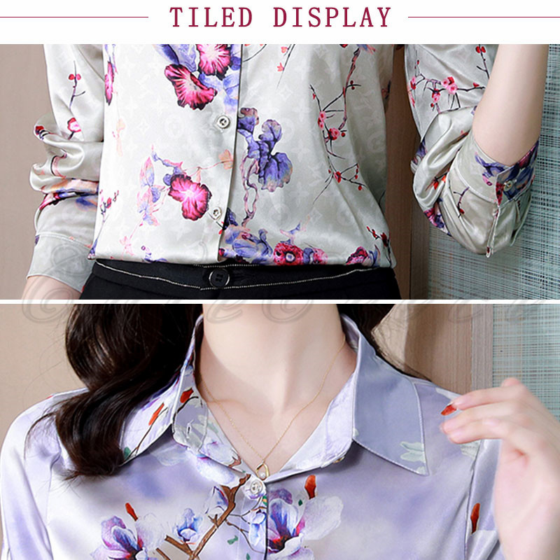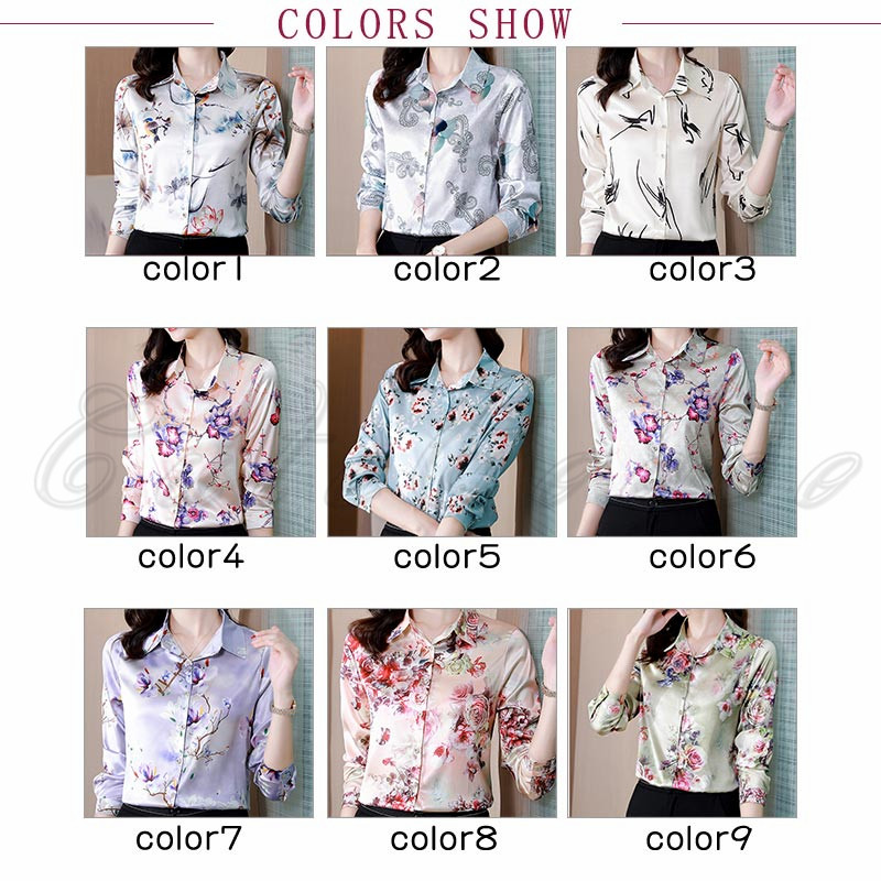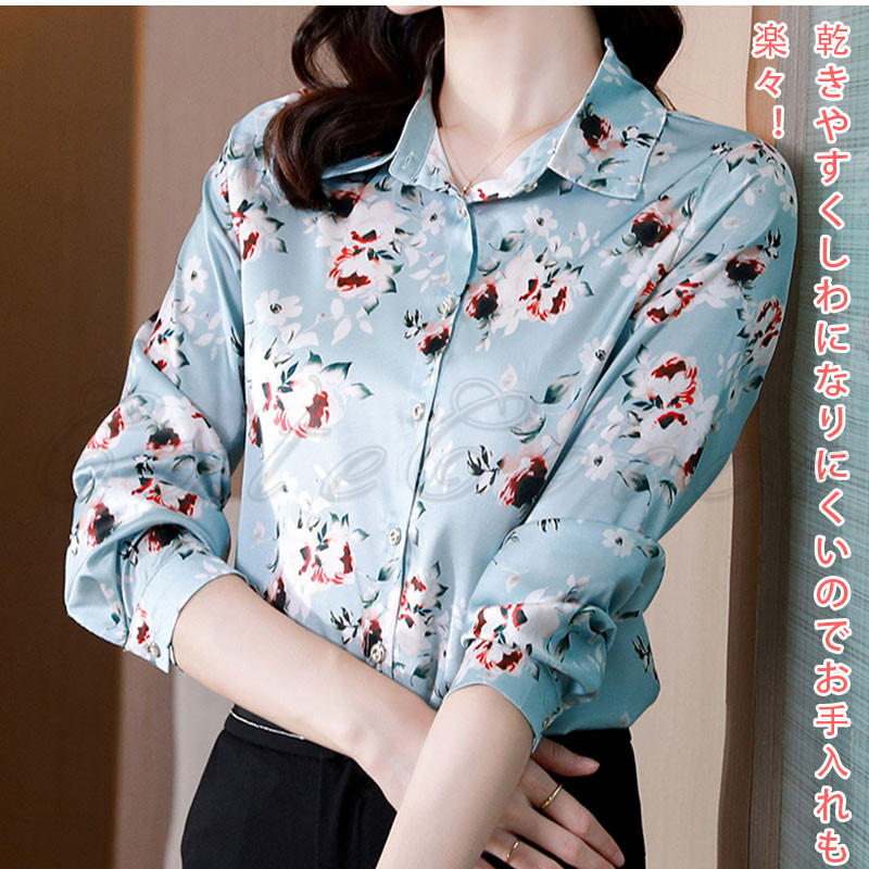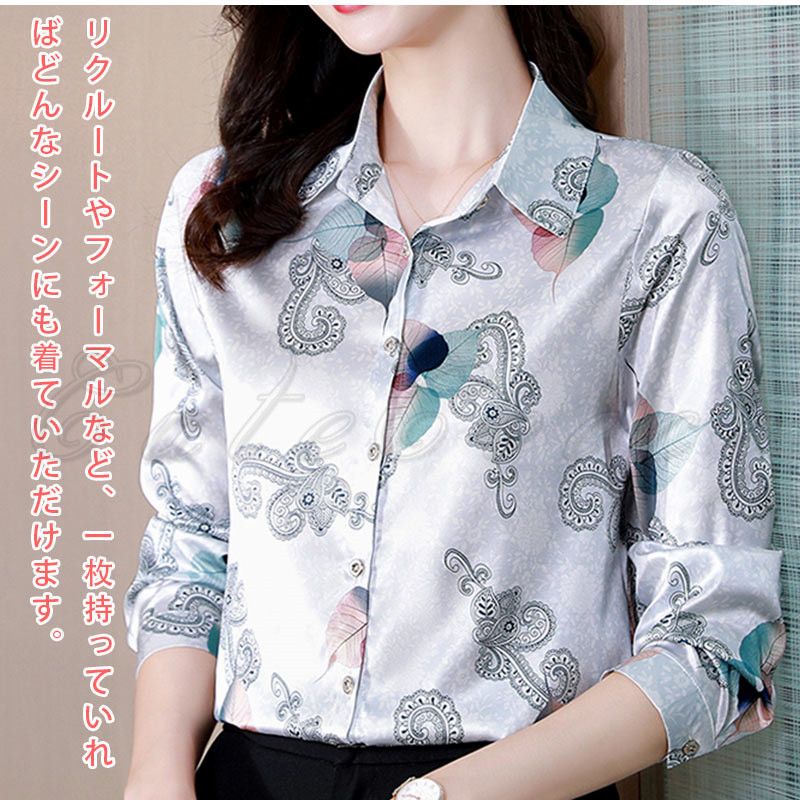 シャツ 花柄 長袖 レディース ブラウス サテン風 事務服 ビジネス 送料無料 大きいサイズ 結婚式 梅 通勤 就活 連の花 薔薇 OL オフィス 高級感 お洒落