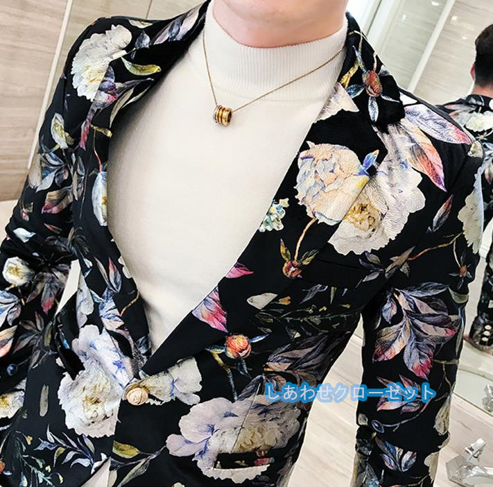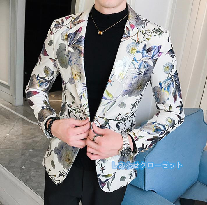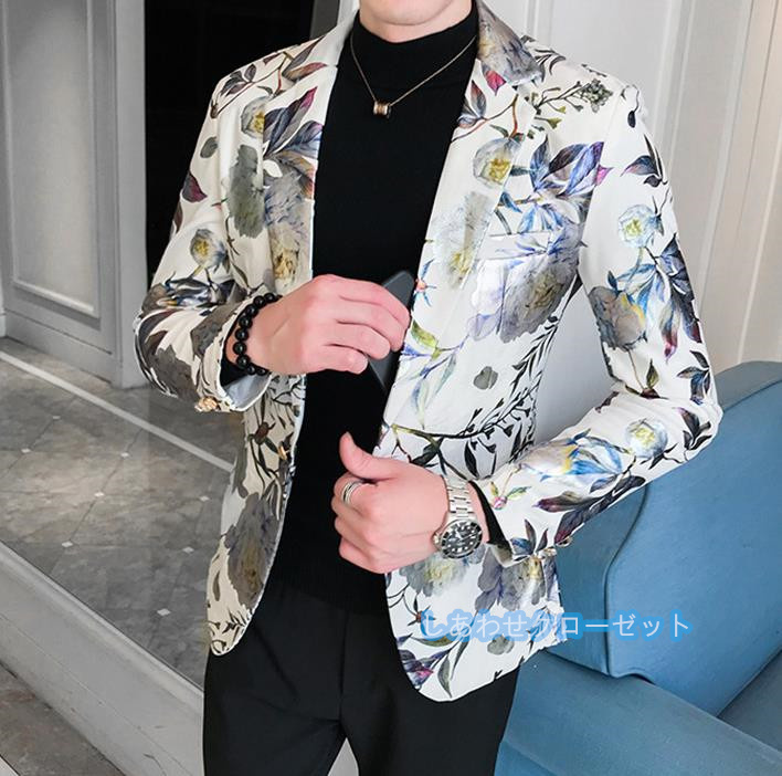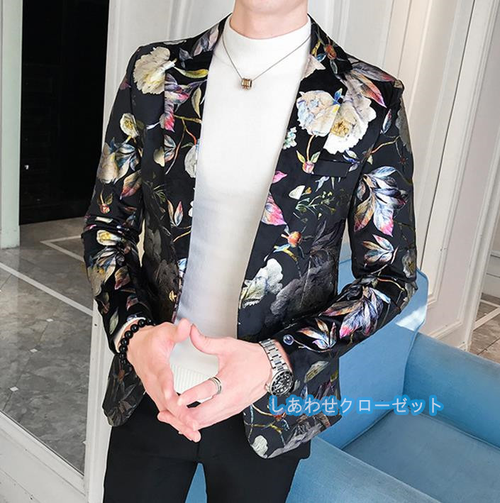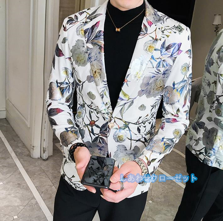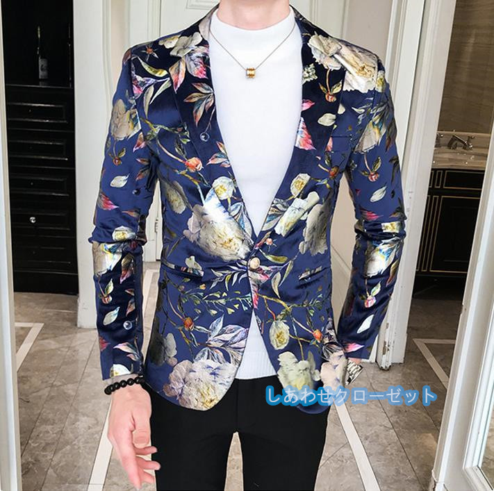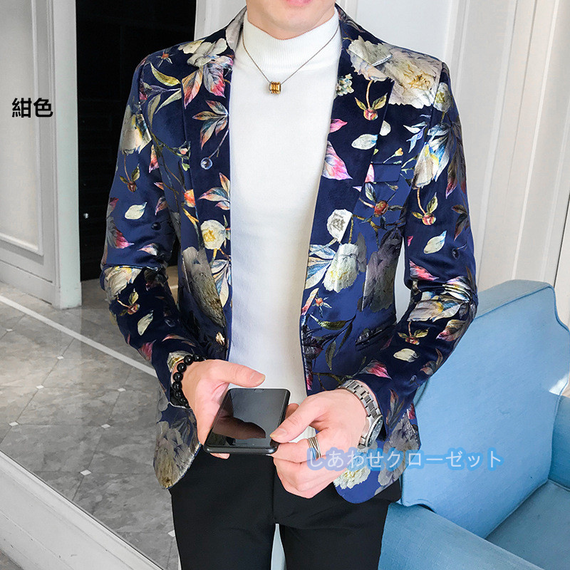 テーラードジャケット メンズ おしゃれ ブレザージャケット カジュアルスーツ 花柄 紳士用 春