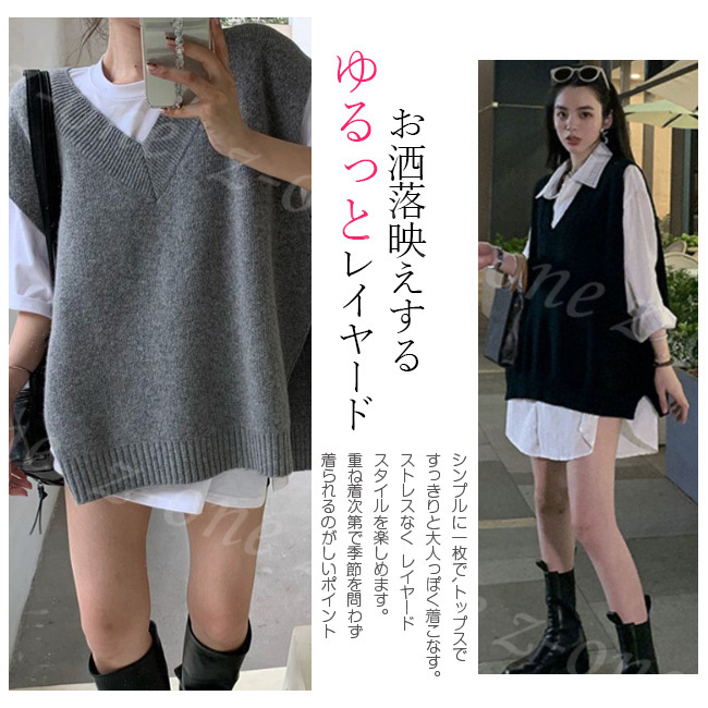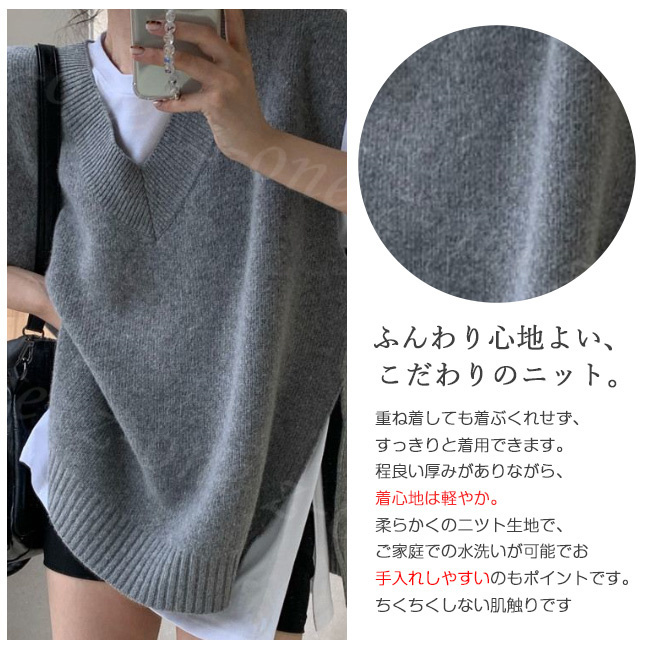 ベスト ニット プルオーバー レディース 新作 Vネック 柔らかい セーター レイヤード ゆったり 保温 通学 春 アウター 体型カバー 通勤 可愛い 学生 秋冬 大人