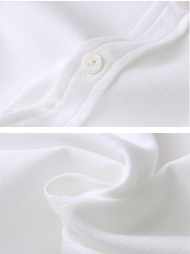 あわせには同色のボタンを配してシンプルナチュラルに。