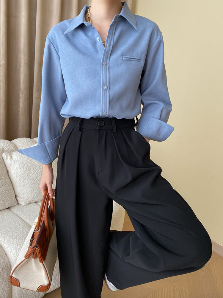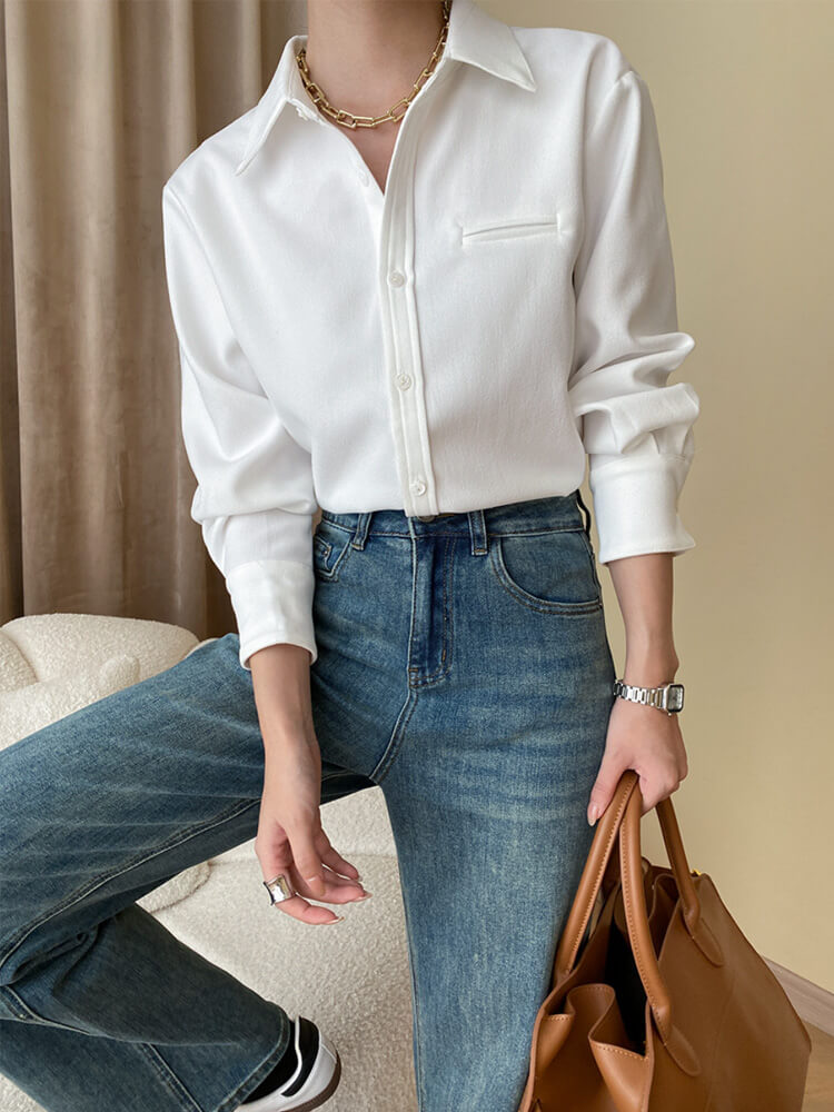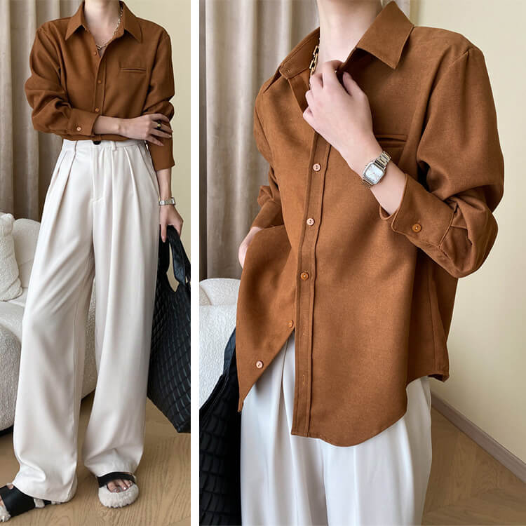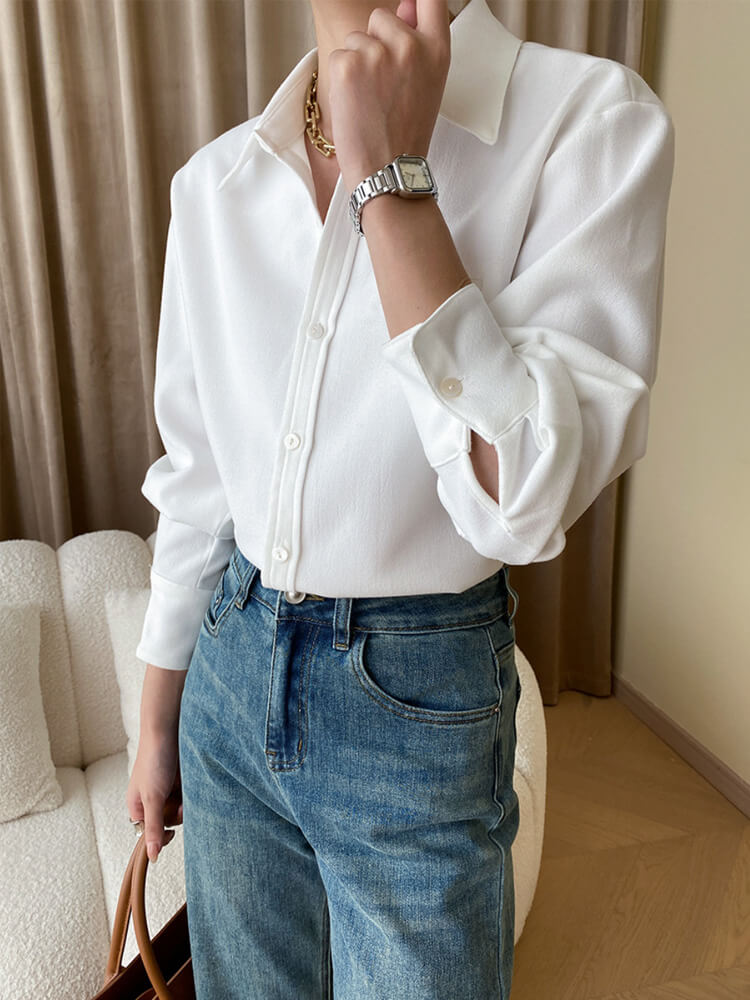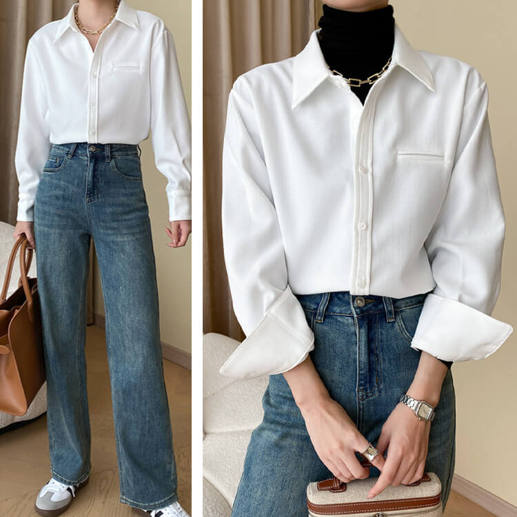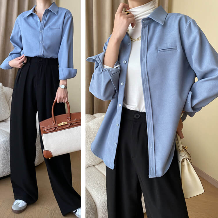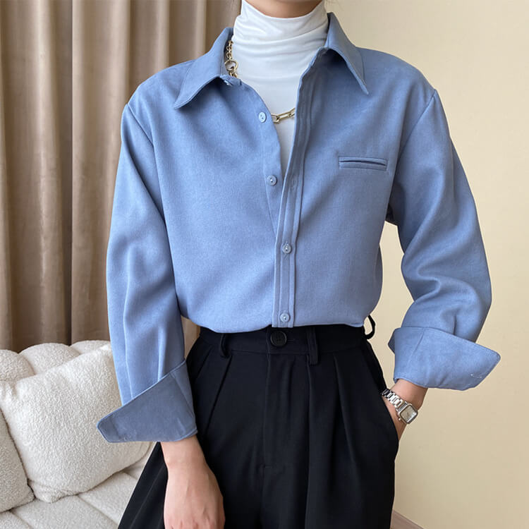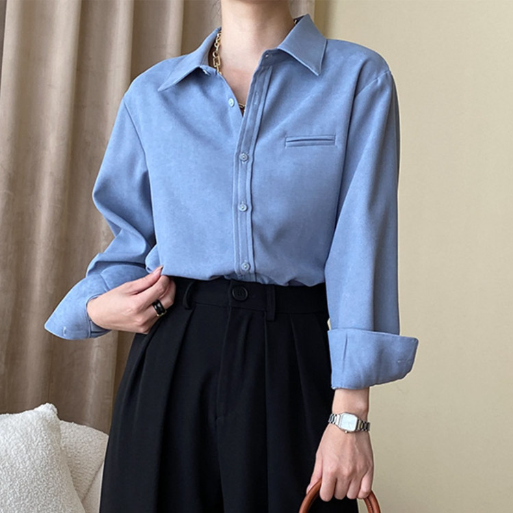 韓国デザインのスタンダードデザイン長袖ブラウス。