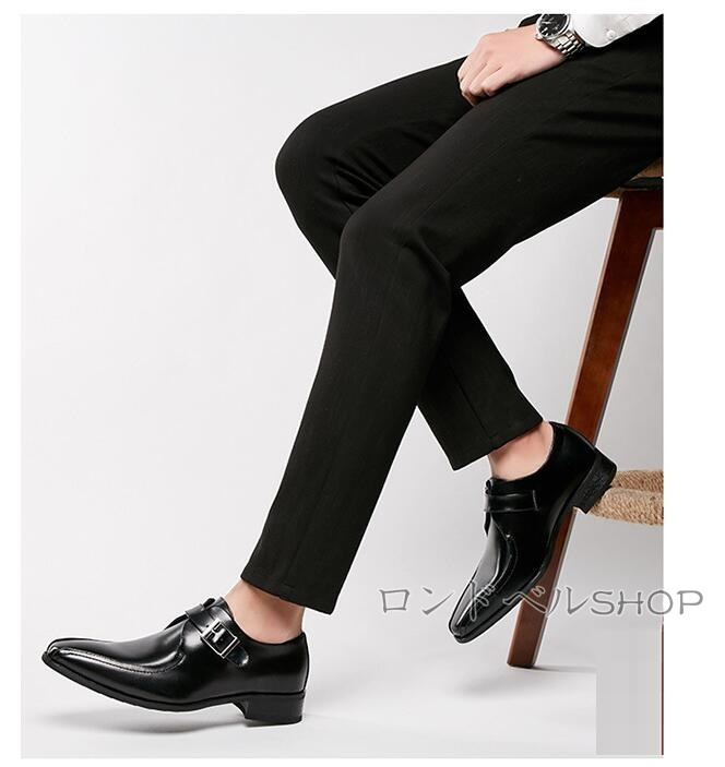 ビジネスメンズ 。 革靴 ストレートチップ 内羽根 幅広 父の日 紐なし 結婚式 身長UP スリッポン ヒール3CM プレゼント 仕事靴 紳士靴