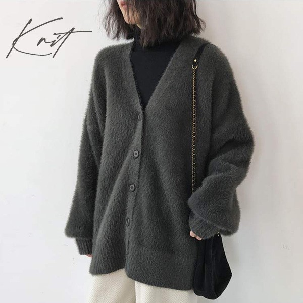 ニットカーディガン 秋冬 ゆったり セーター ざっくり オーバーサイズ 前開き トップス 日常服 カジュアル ニットカーディガン ニットカーデ 無地 ゆるニット 羽織 おしゃれ ZEJC