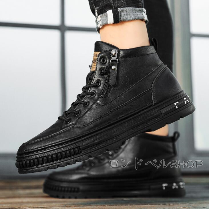 メンズ スニーカー ウォーキング 防水 防滑 厚底スニーカー サイドジッパー付き 快適 立ち仕事 履きやすい 通勤 カジュアル軽量 運動靴 通学
