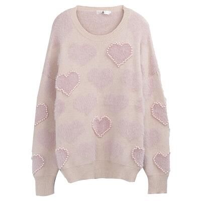 シャギー ニット カットソー セーター トップス カジュアル レディース 長袖 きれいめ 体型カバー ビジュー オーバーサイズ おしゃれ 可愛い ドロップショルダ