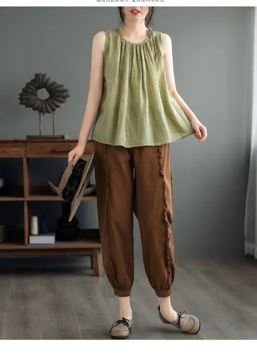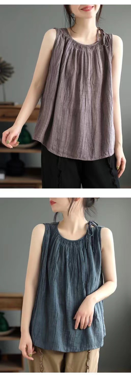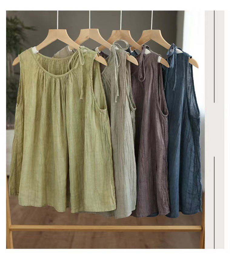 商品名:タンクトップ レディース コットン ノースリーブ 無地 トップス カジュアル 体型カバー 森ガール 薄手 ゆったり 大きいサイズ 薄手 インナー お洒落