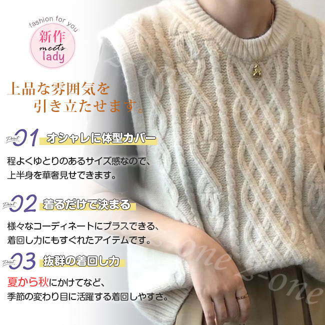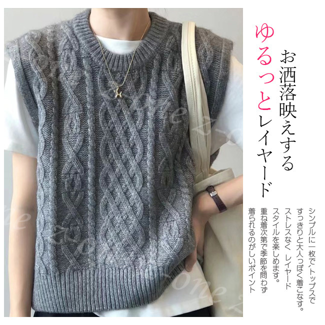 ベスト ニット プルオーバー レディース 新作 レイヤード 春 柔らかい 秋冬 通勤 大人 通学 ケーブル編み ゆったり 保温 Vネック 学生 体型カバー 可愛い