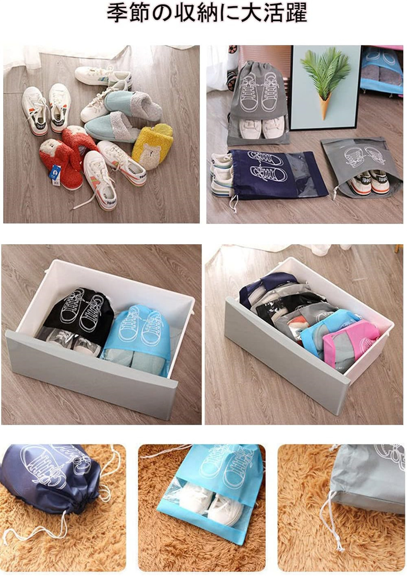 シューズバッグ 4色セット ブラック、ブルー、ネイビー、グレー各1枚