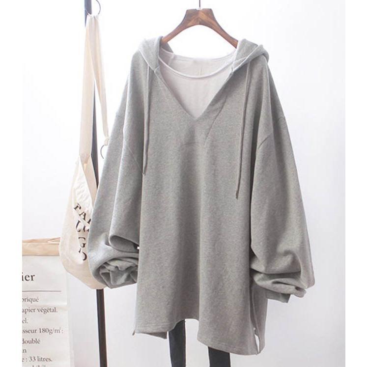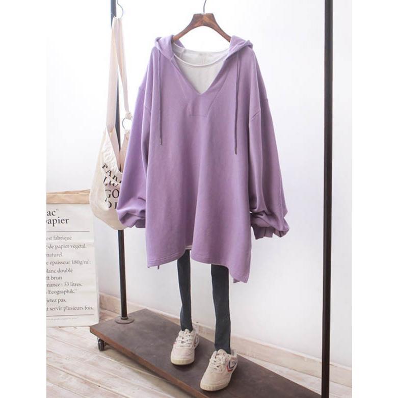 フード付き Vネック ゆったり シンプル カジュアル レディース トップス