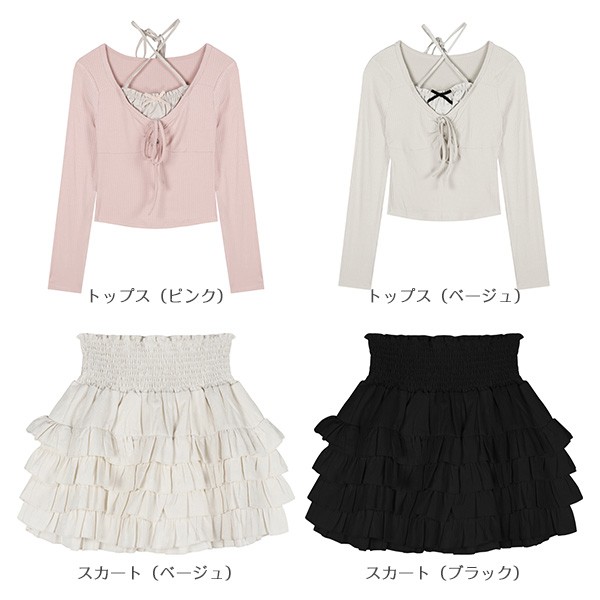 トップス(ピンク) トップス(ベージュ) スカート(ブラック) スカート(ベージュ)