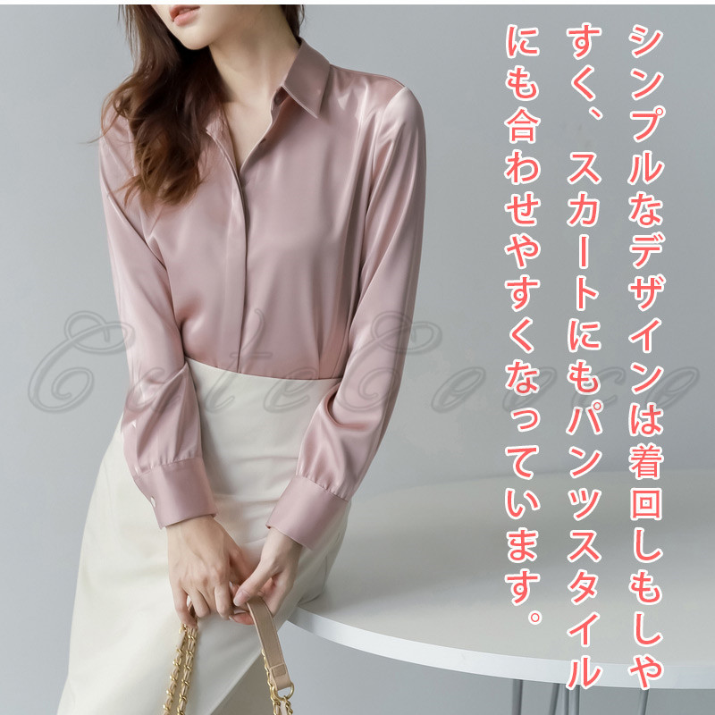 高級感 アセテートサテン シャツ オフィス ビジネス ブラウス 通勤 レディース 制服面接 透けない 長袖 就活 送料無料 OL 結婚式 シンプル 無地 フォーマル