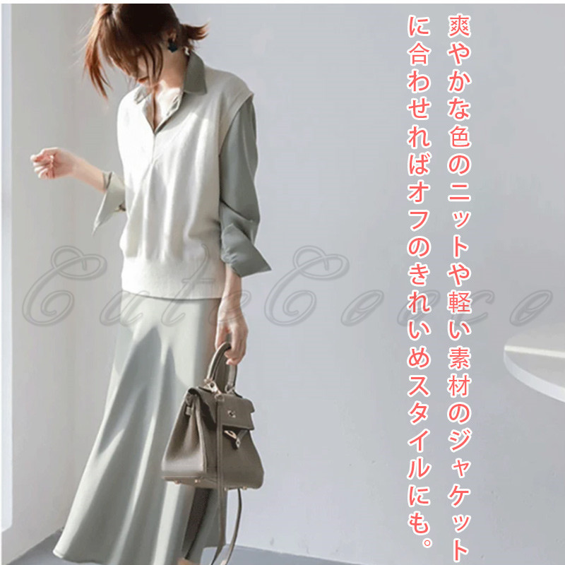 シンプルなデザインは着回しもしやすく、スカートにもパンツスタイルにも合わせやすくなっています。