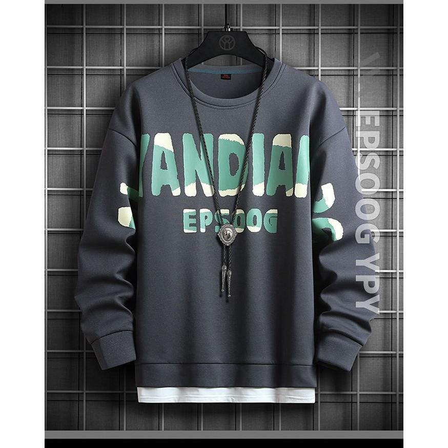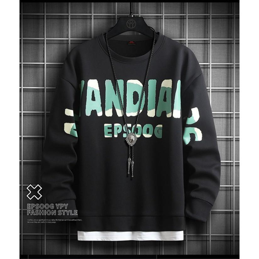 トレーナー メンズ クルーネック スウェット Tシャツ 長袖 重ね着風 トップス カジュアル プルオーバー おしゃれ コーデ シンプル 春 秋服