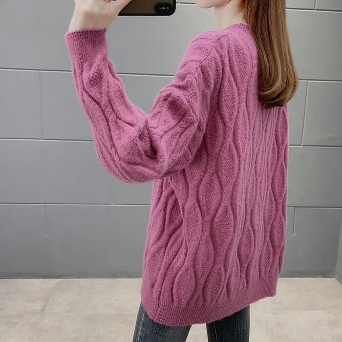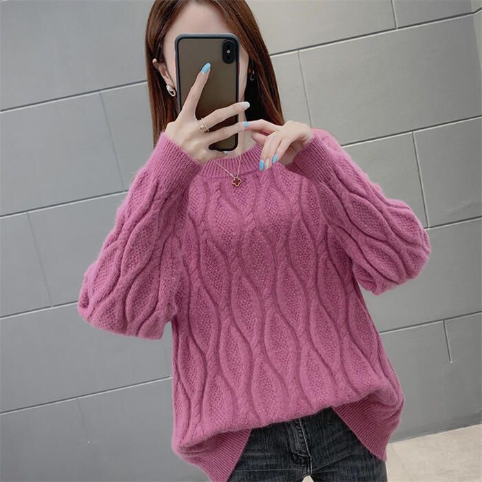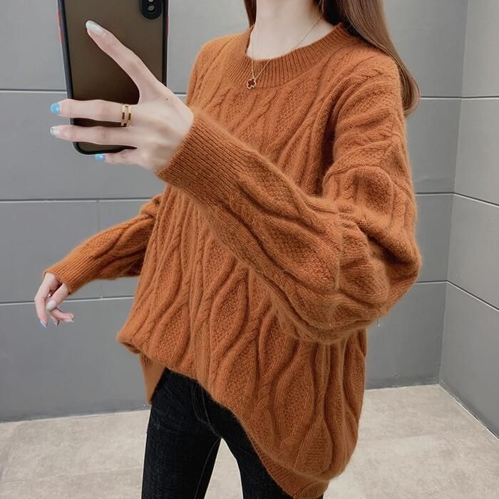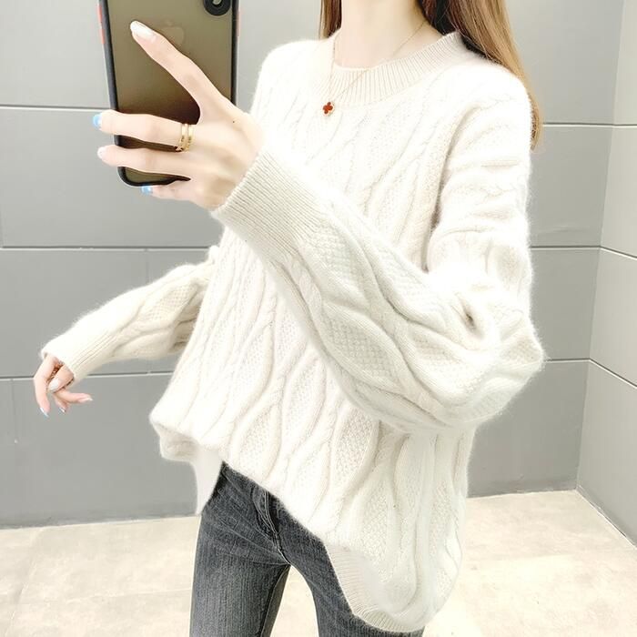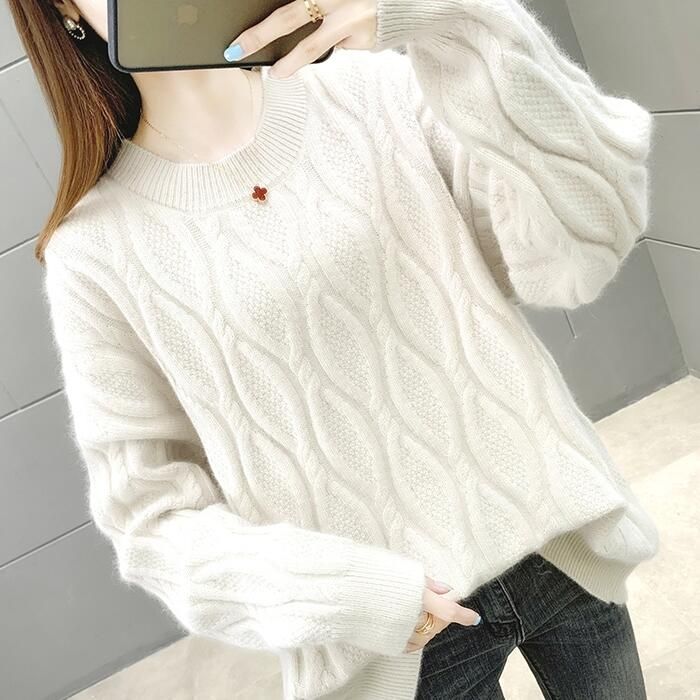 トップス ニット セーター ケーブル レディース きれいめ 体型カバー ゆったり クルーネック 大人 おしゃれ ブル 長袖 シンプル カジュアル 可愛い フェミニン