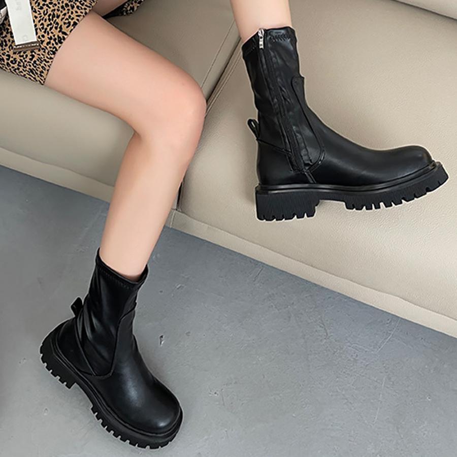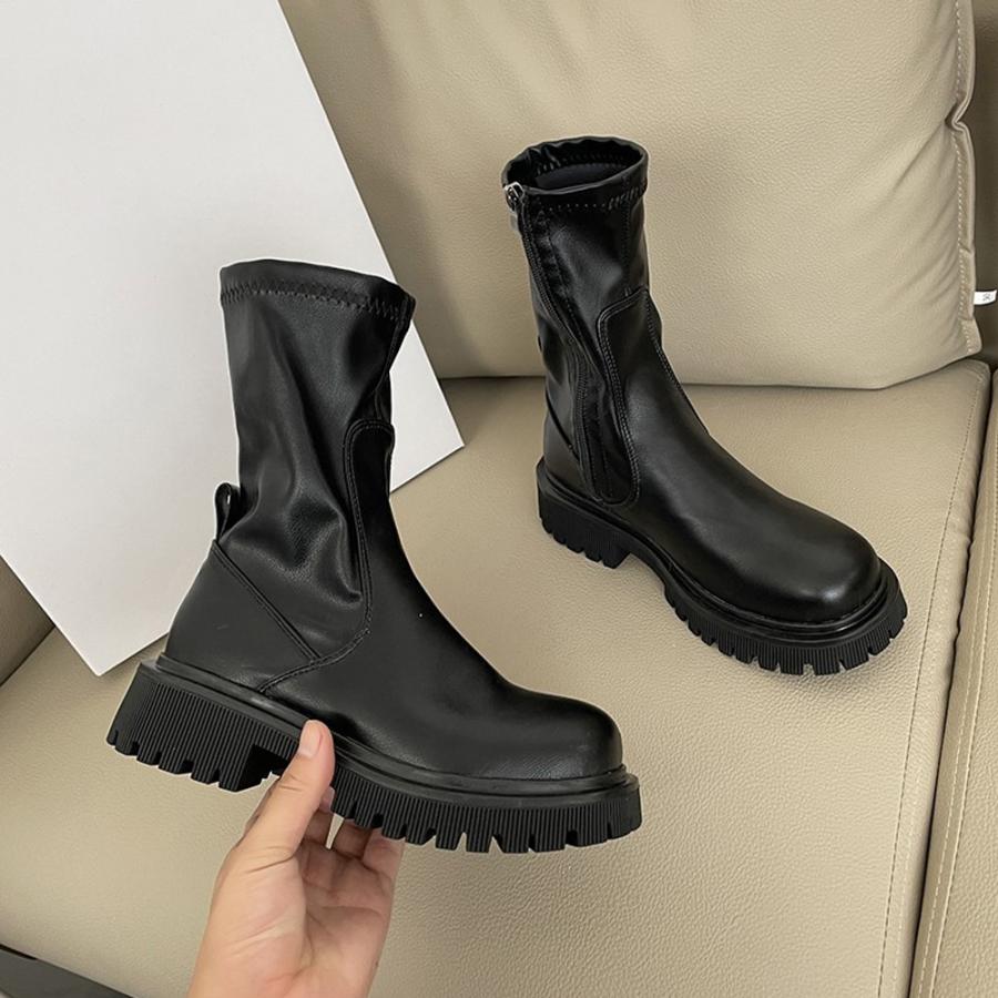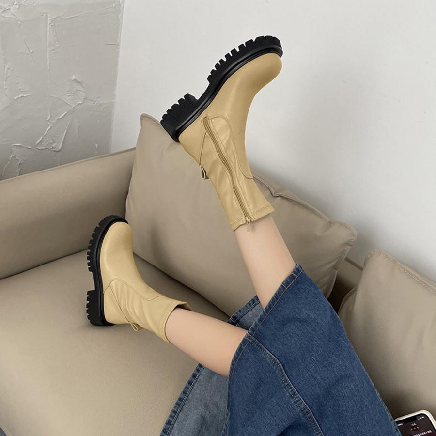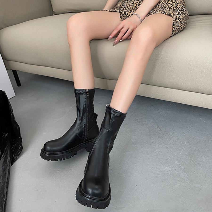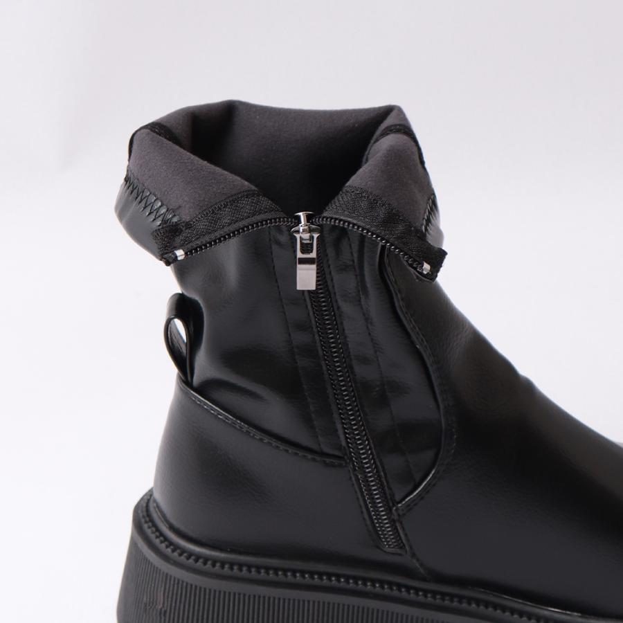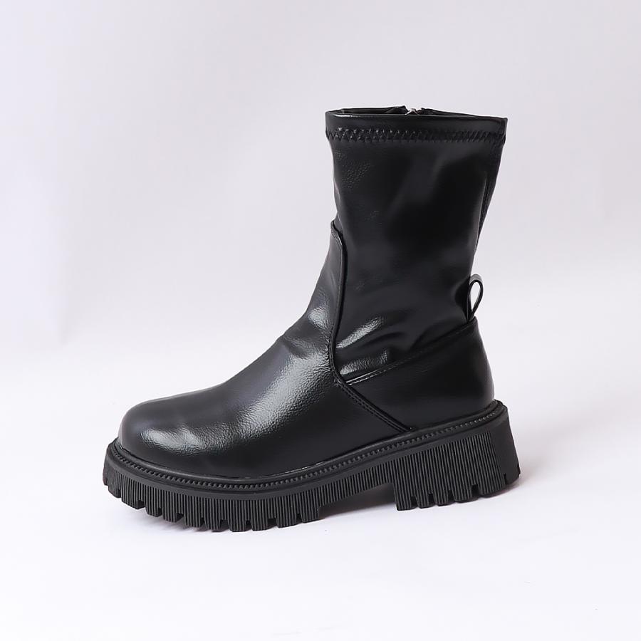 ストレッチ ミドルブーツ サイドジップ 歩きやすい 秋冬 カジュアル 疲れにくい シューズ お洒落 ワークブーツ