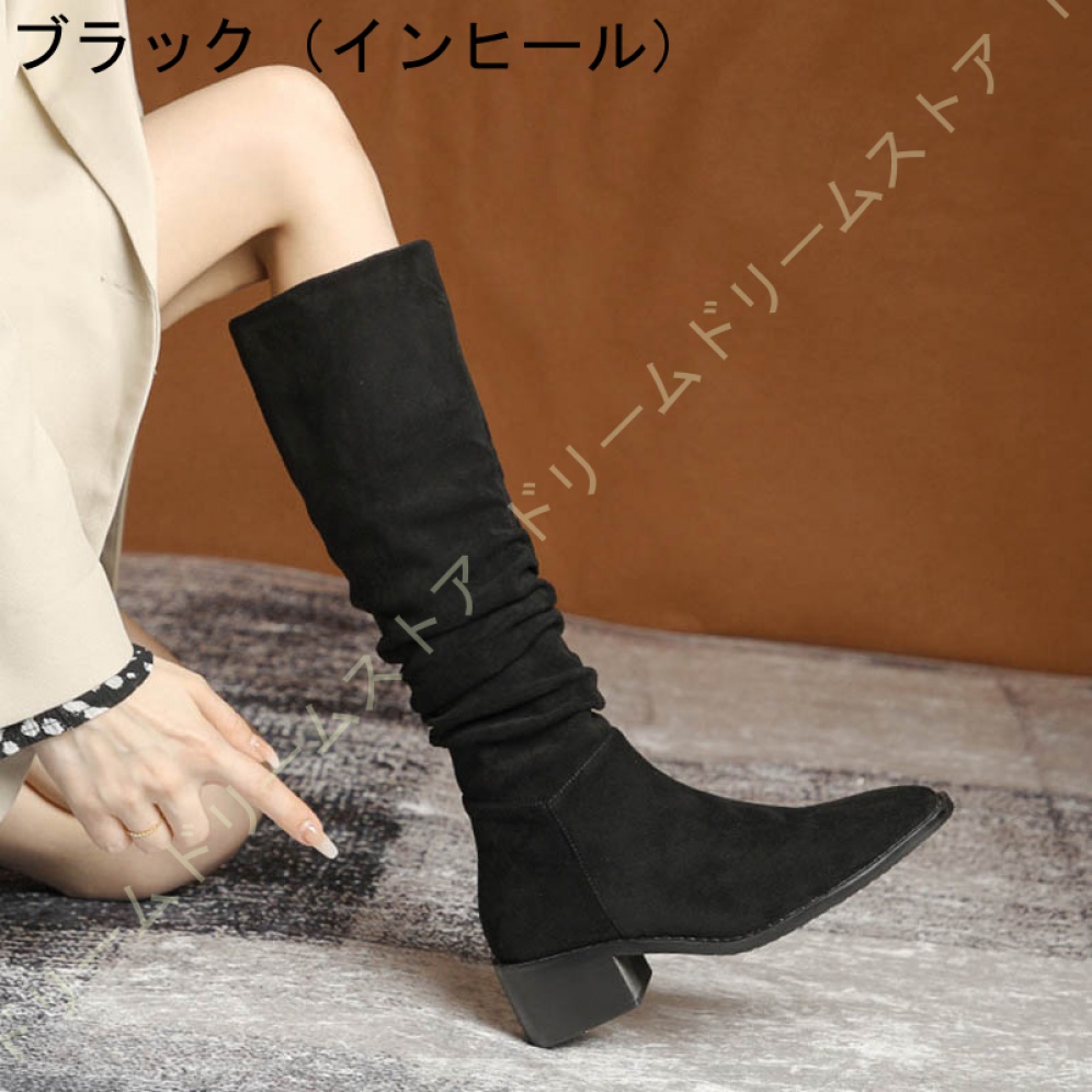 ロングブーツ ローヒール 細身 レディース ブーツ 大きい 筒周り レディース バイクブーツ 筒周り大きい 黒 大きいサイズ プリーツ ブーツ 歩きやすい ブーツ 大きい ジョッキーブーツ ロング 履き口 ゆったり 秋冬 春靴
