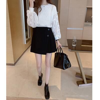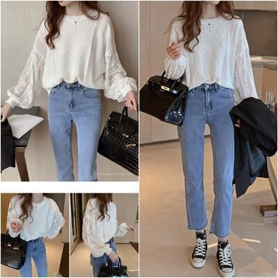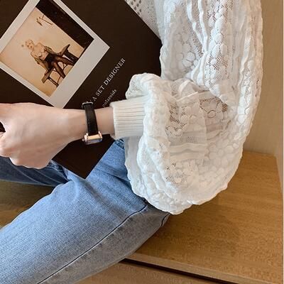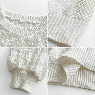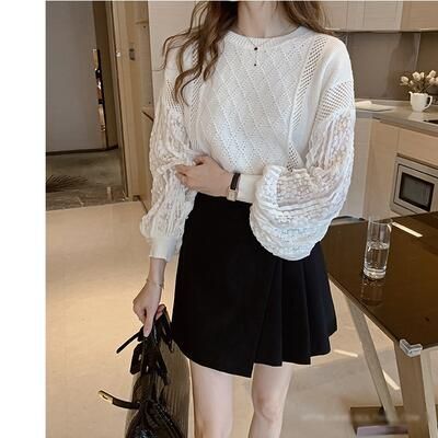 トップス レディース ニット きれいめ レース カジュアル 抜け感 エレシンプル カットソー おしゃれ パフスリーブ 長袖 ナチュラル 可愛い フェミニン