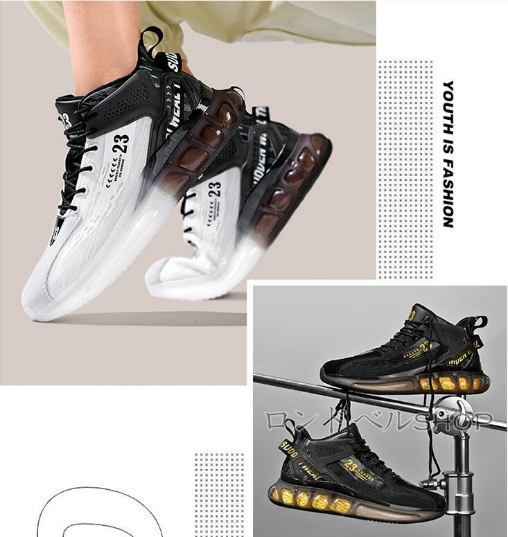 グラデーション スポーツメンズ ハイカット スニーカー 厚底 疲れにくい かっこいい 運動靴 学生 ランニング通勤 。 通学 大人 衝撃吸