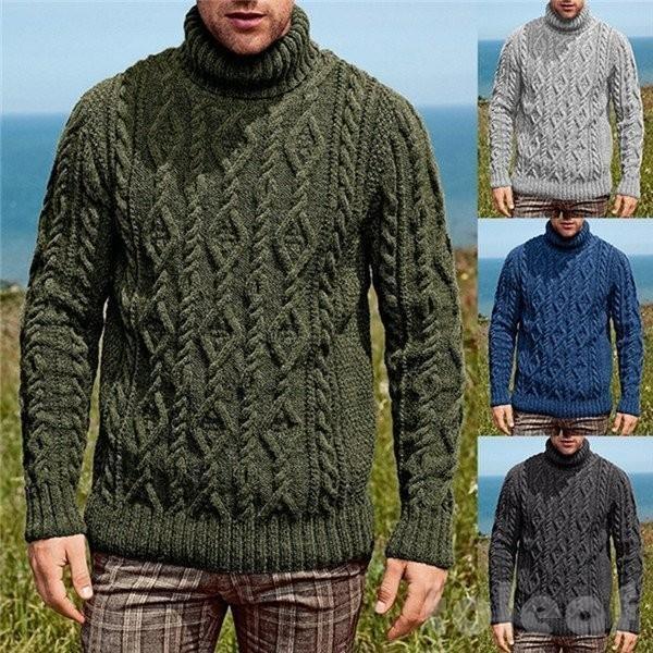 ニットセーターメンズ秋冬厚手ハイネックタートルリブ編み暖かい防寒保温男性用無地カジュアル。お出かけ通学30代