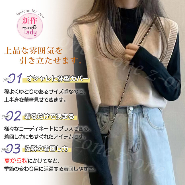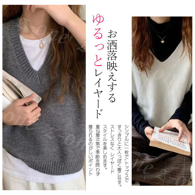 ベスト ニット プルオーバー レディース 新作 Vネック 可愛い 秋冬 ゆったり 体型カバー セーター レイヤード 春 通勤 柔らかい 大人 学生 アウター 保温 通学