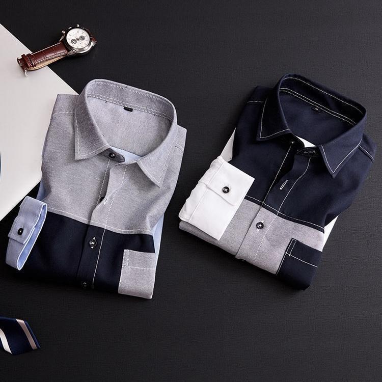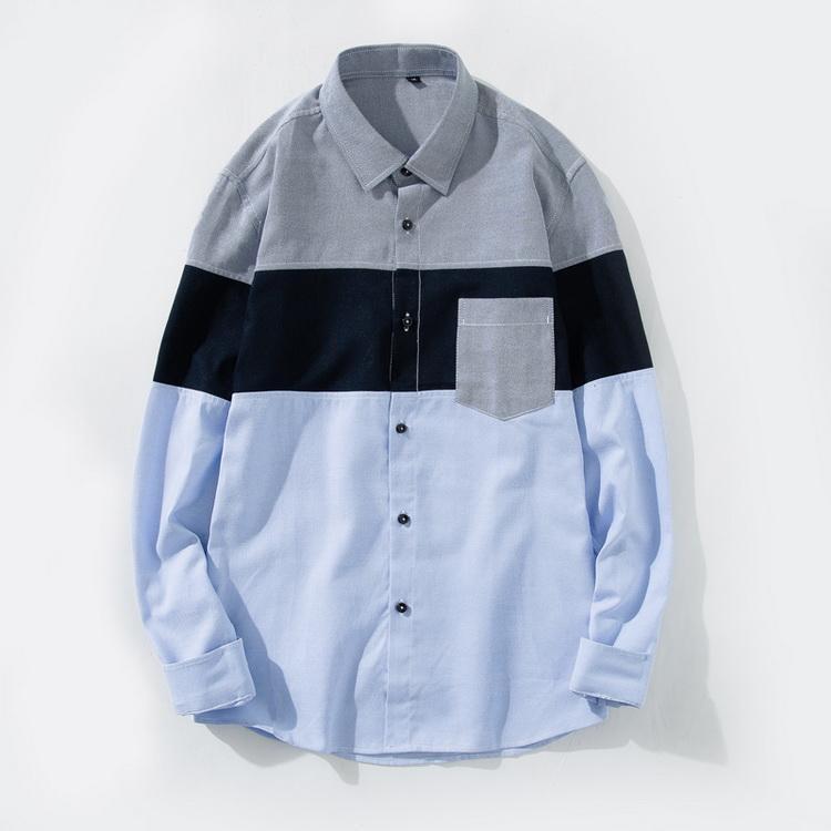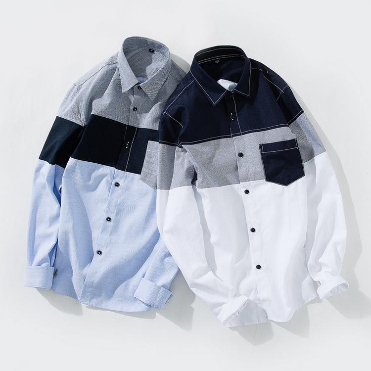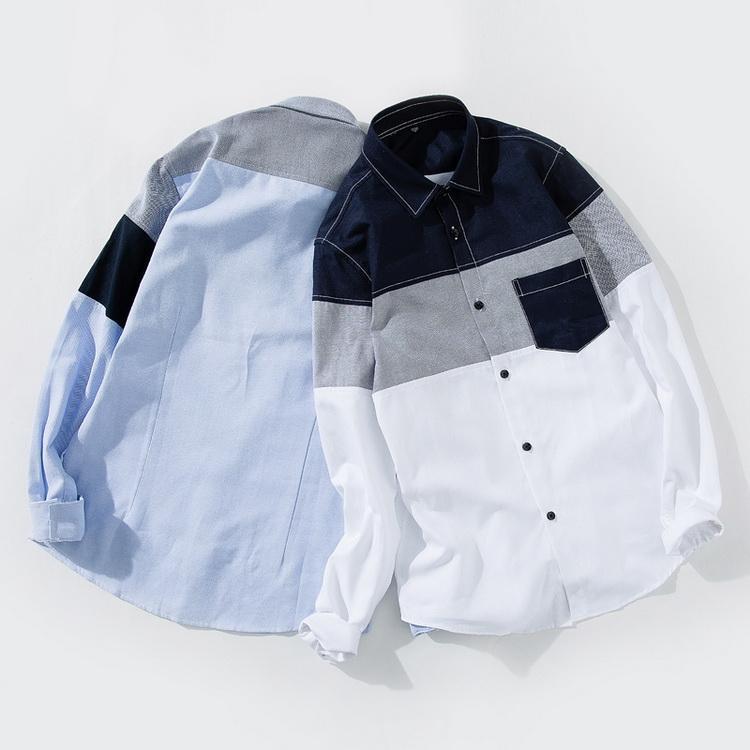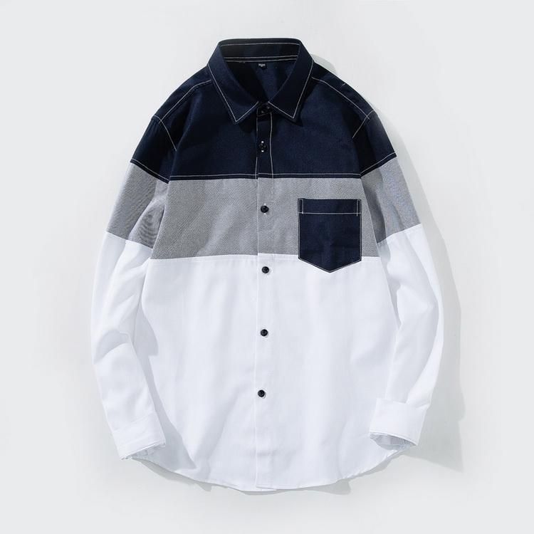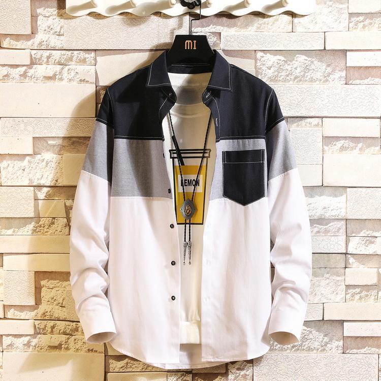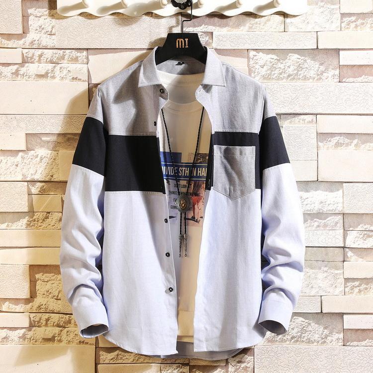 シャツ ボーダー 切り替え トップス カジュアルシャツ 長袖シャツ メンズ ファッション 春 夏