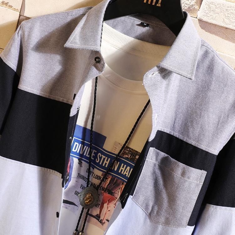 シャツ ボーダー 切り替え トップス カジュアルシャツ 長袖シャツ ファッション メンズ 春 夏