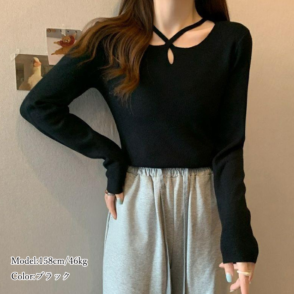 レディース 大人カジュアル リブニット 長袖 タイトニット 着やせ ニットインナー 韓国風 セクシー ニットセーター秋冬