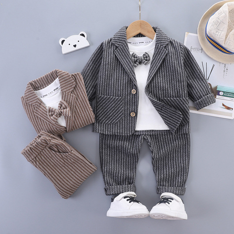柔らかく、通気性があり、肌に優しい男の子スーツセットです。