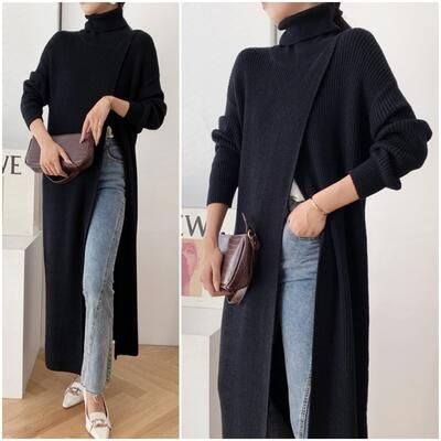 レイヤード ニット トップス フェミニン ワンピース ロングワンピ シンプル 体型カバー ゆったり 黒 カジュアル 長袖 パープル ブ ロング丈 きれいめ ブラック