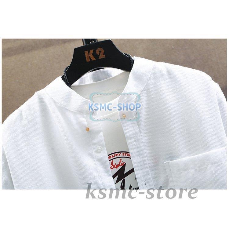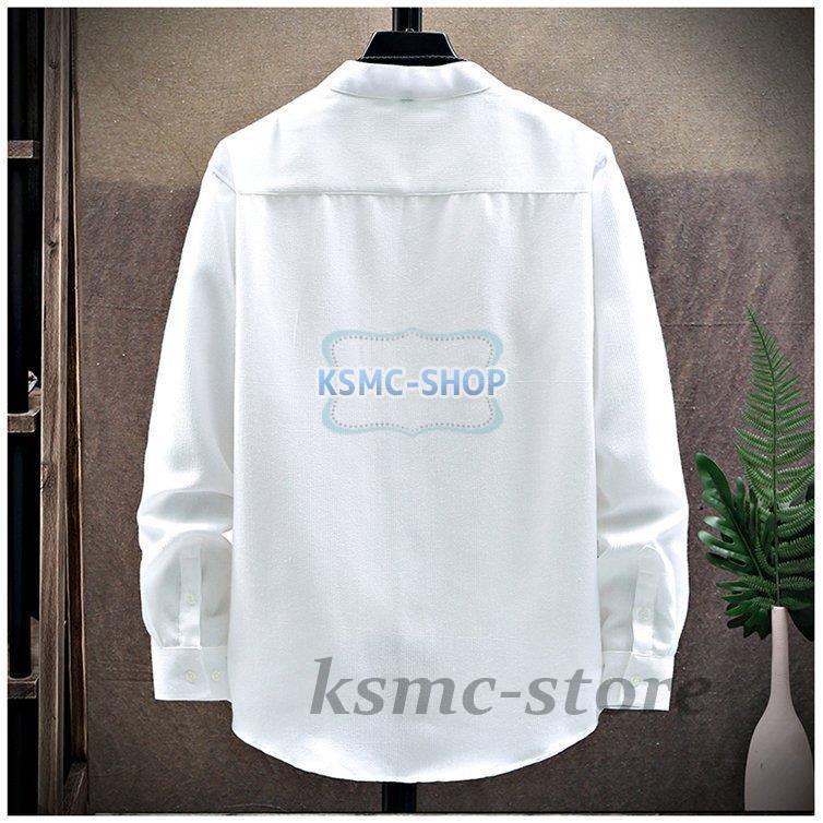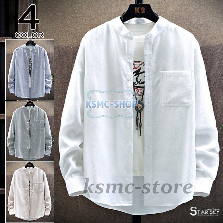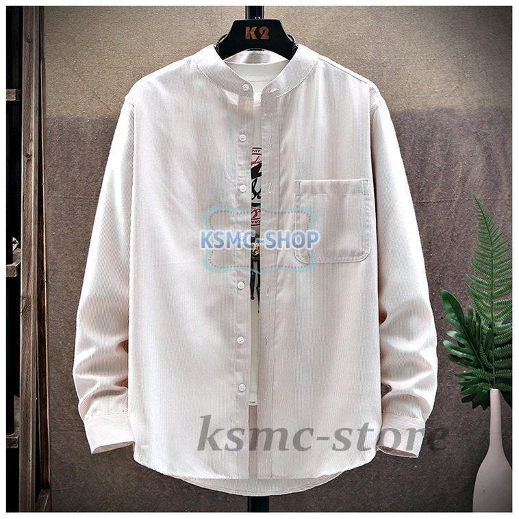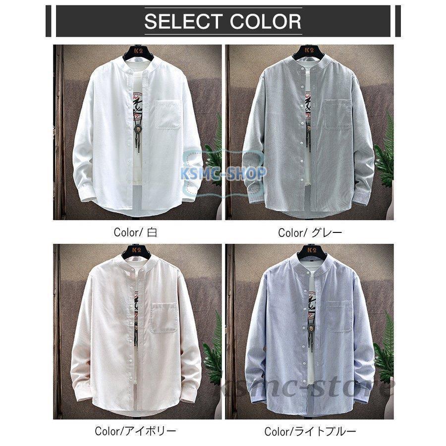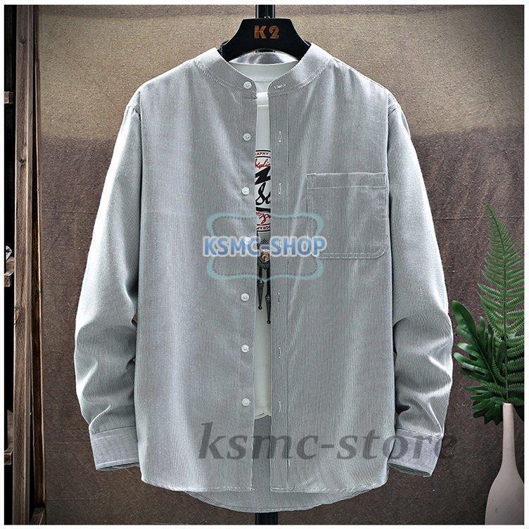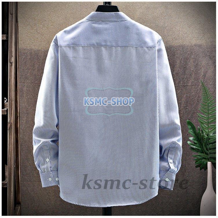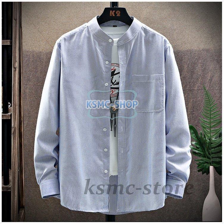 長袖シャツ メンズ ストライプシャツ カジュアルシャツ 立ち襟シャツ 胸ポッケト薄手 春秋 50代 ファッション 40代