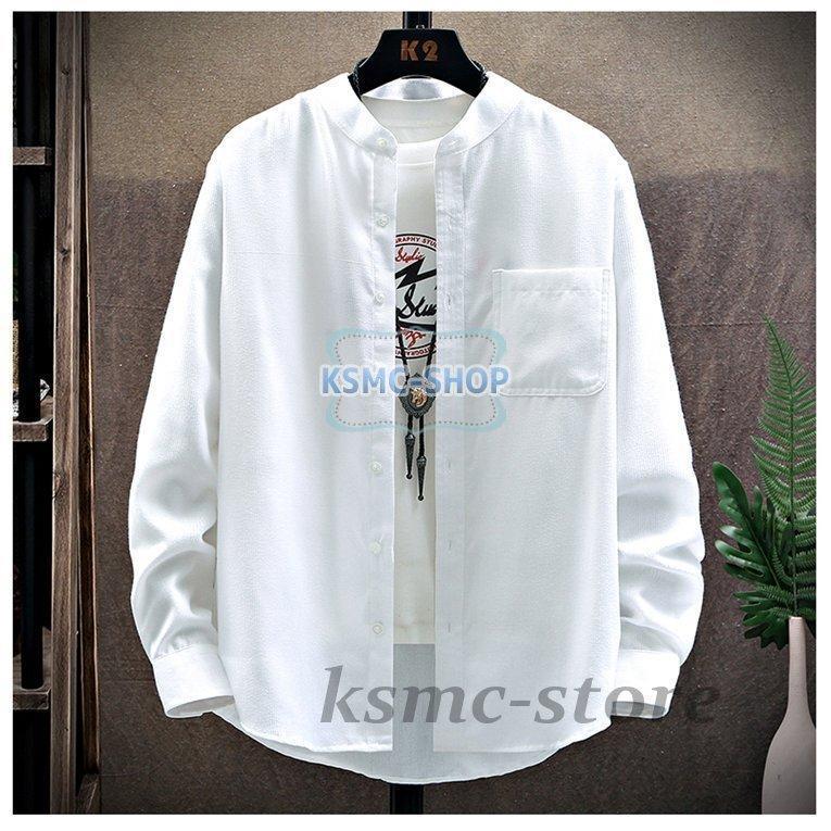 長袖シャツ メンズ ストライプシャツ カジュアルシャツ 立ち襟シャツ 胸ポッケト薄手 春秋 40代 50代 ファッション