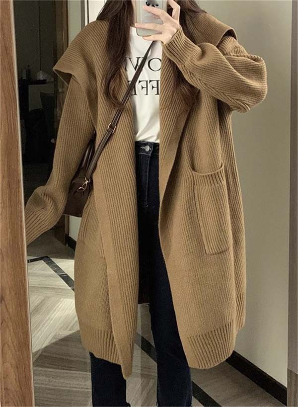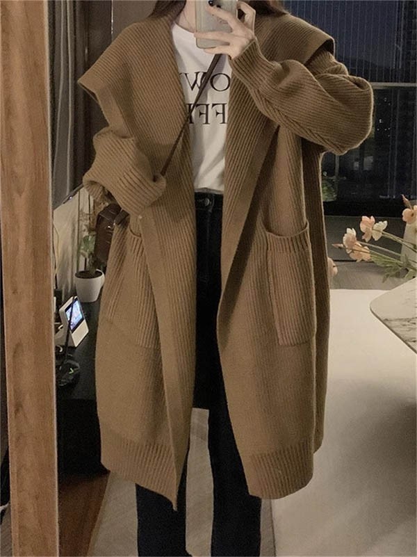 ニットカーディガン 秋冬 ゆったり セーター ざっくり オーバーサイズ 前開き トップス 日常服 カジュアル ニットカーディガン ニットカーデ 無地 ゆるニット 羽織 おしゃれ ZEJC