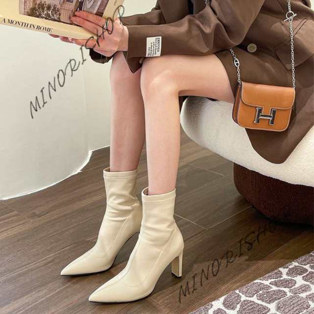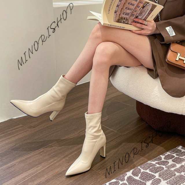 ブーティー レディース スエード調 ショートブーツ ピンヒール ストレッチブーツ ハイヒール ポインテッドトゥ 靴大人かわいい 3E 歩きや