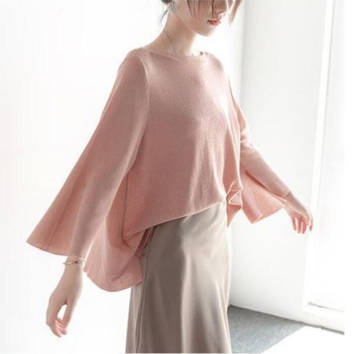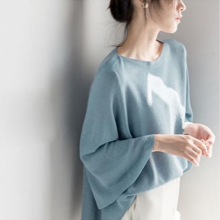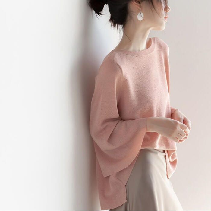 サマーニット リネン混 トップス レディース きれいめ カジュアル 体型カバー ボートネック 長袖 カットソー 可愛い 大人 ニット 薄手 おしゃれ ゆったり 上品