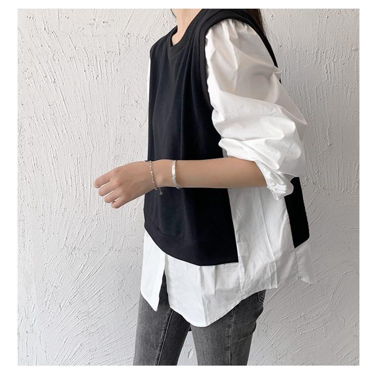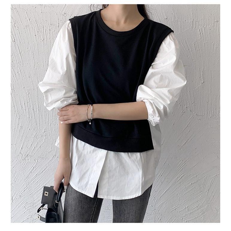 長袖シャツ レディース トップス ブラウス クルーネック 切り替え カジュアル Tシャツ 薄手 ゆったり シンプル