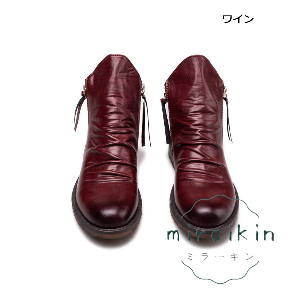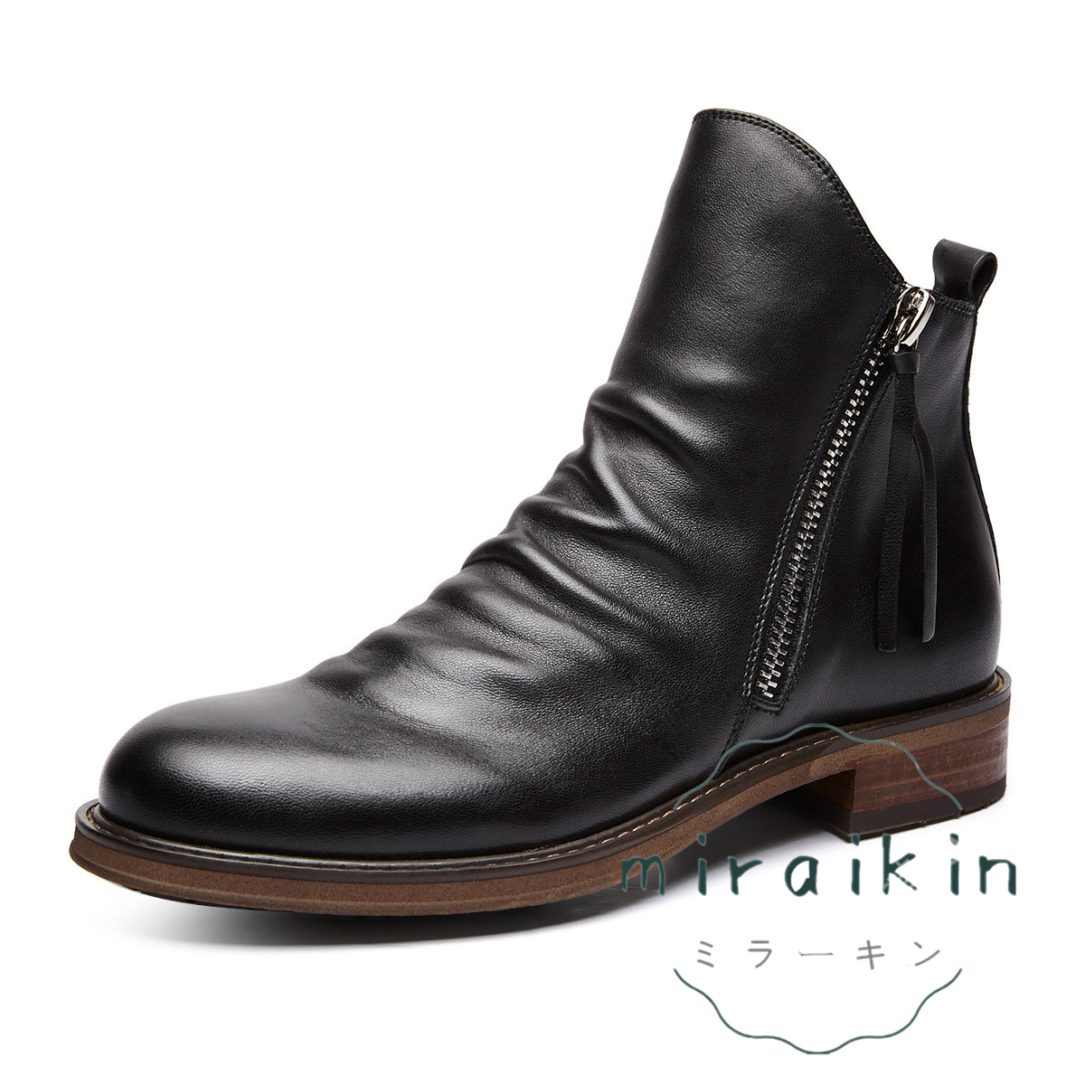 ワークブーツ ショートブーツ メンズ 紳士靴 エンジニア 仕事靴 チャッカブーツ カジュアル 革靴 かっこいい サイドジッパー ビジネス おしゃれ 送料無料