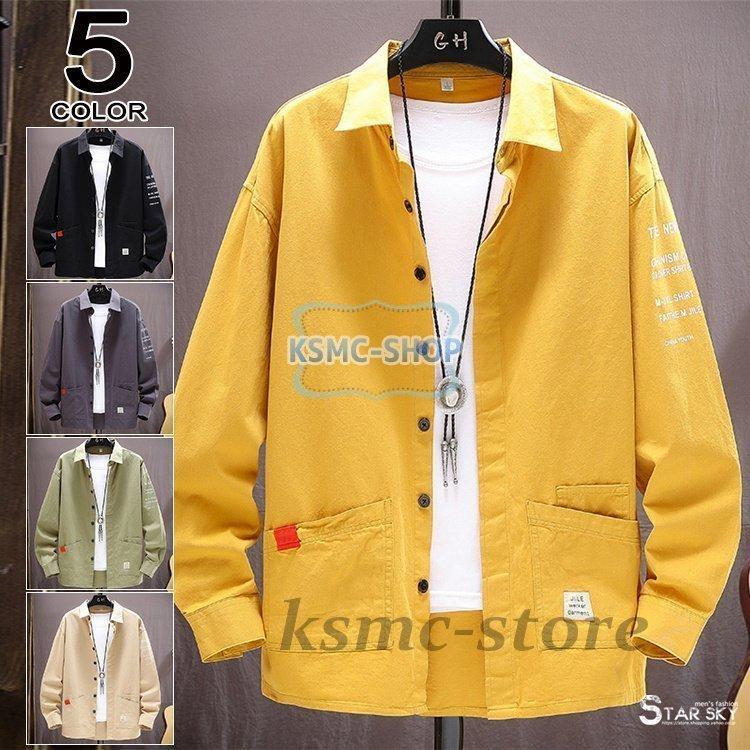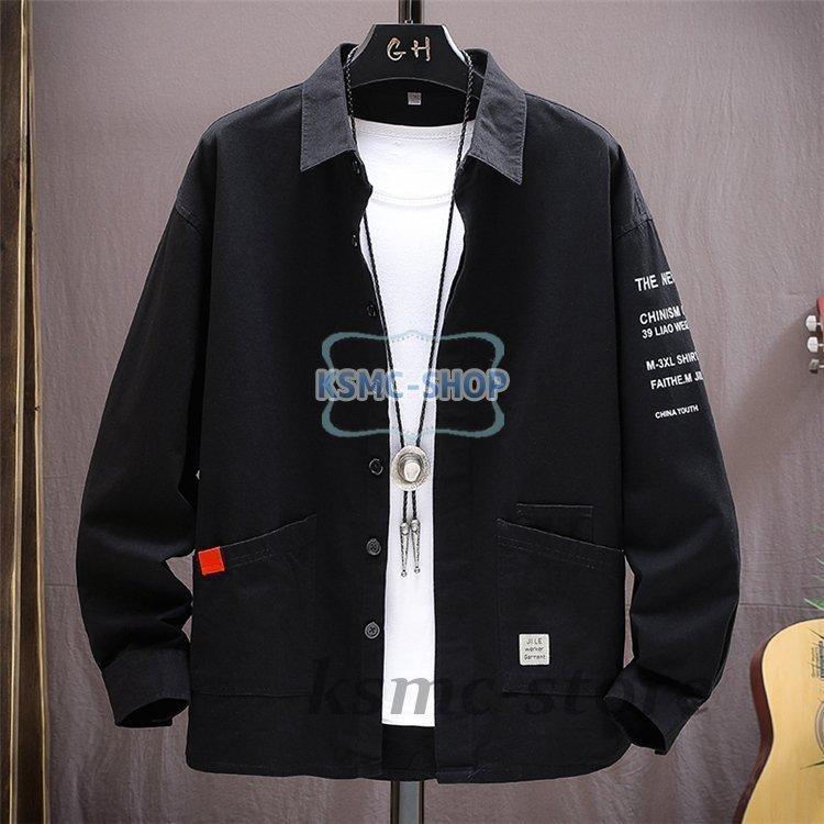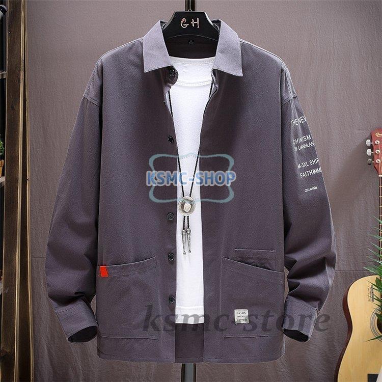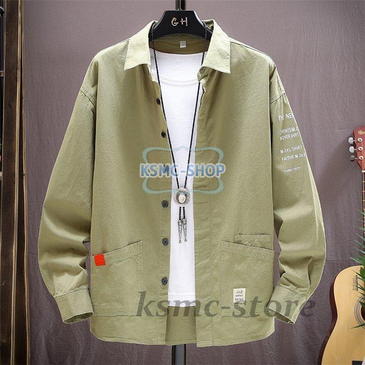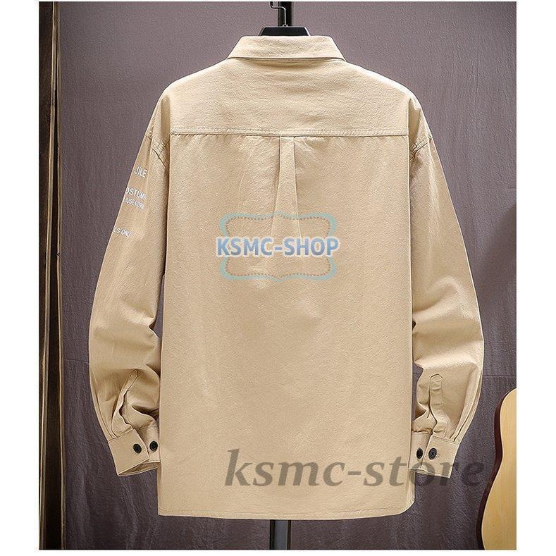 長袖シャツ メンズ ゆったりシャツ 英字 ポッケト付きカジュアルシャツ ビジネス 開襟シャツ おしゃれ 春秋