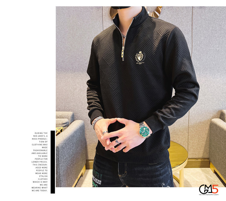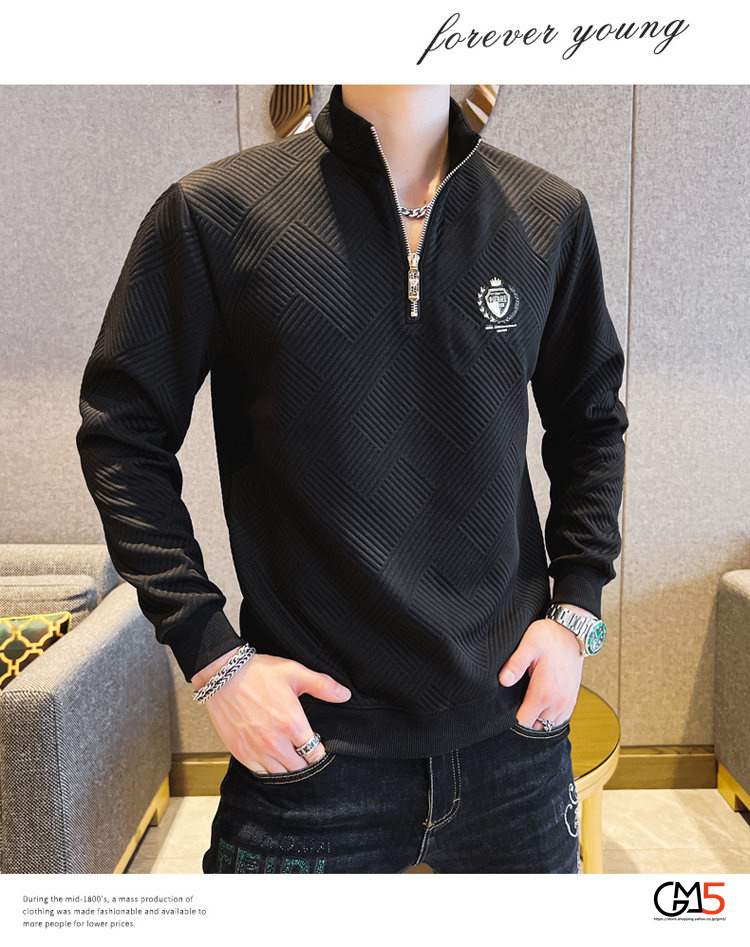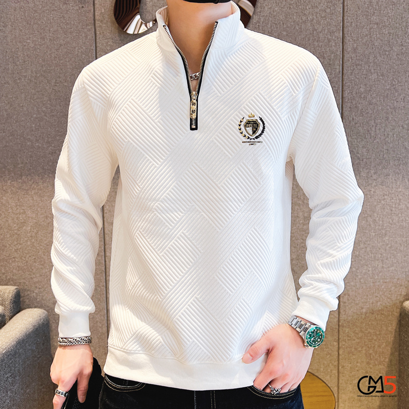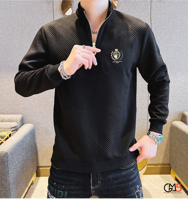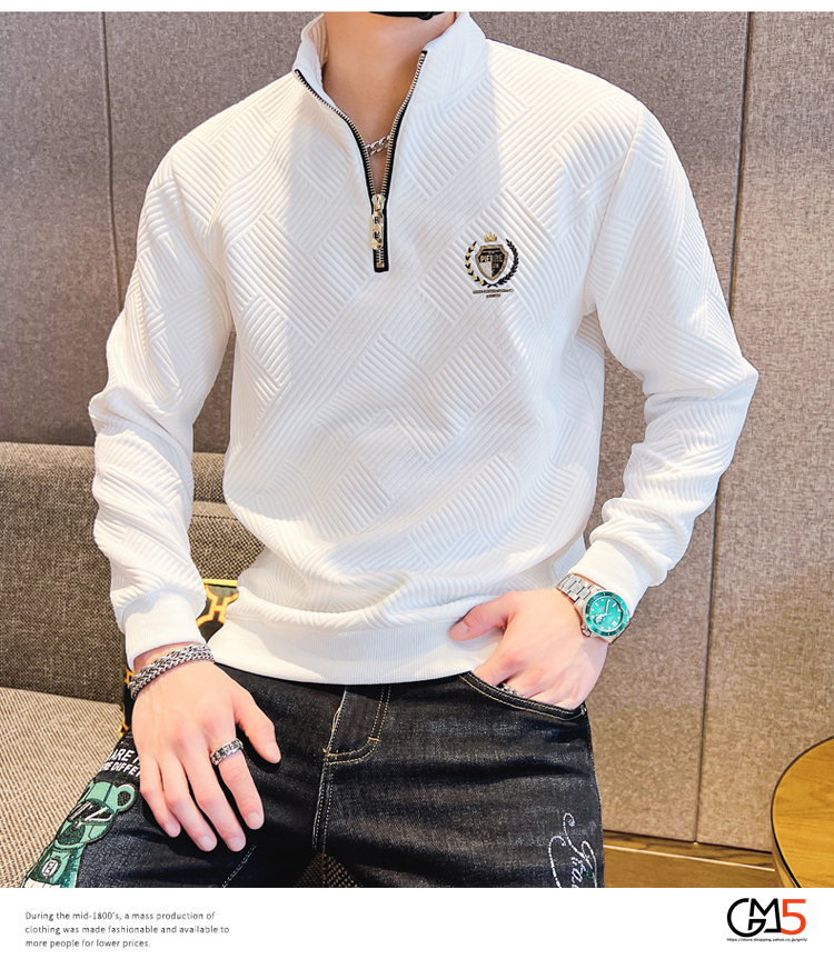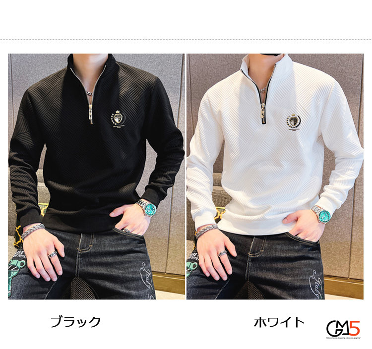 ポロシャツ メンズ 秋服 ゴルフウエア 紳士服 ハーフジッパー 柄物 長袖tシャツ 立ち襟 新作 スポーツトップス