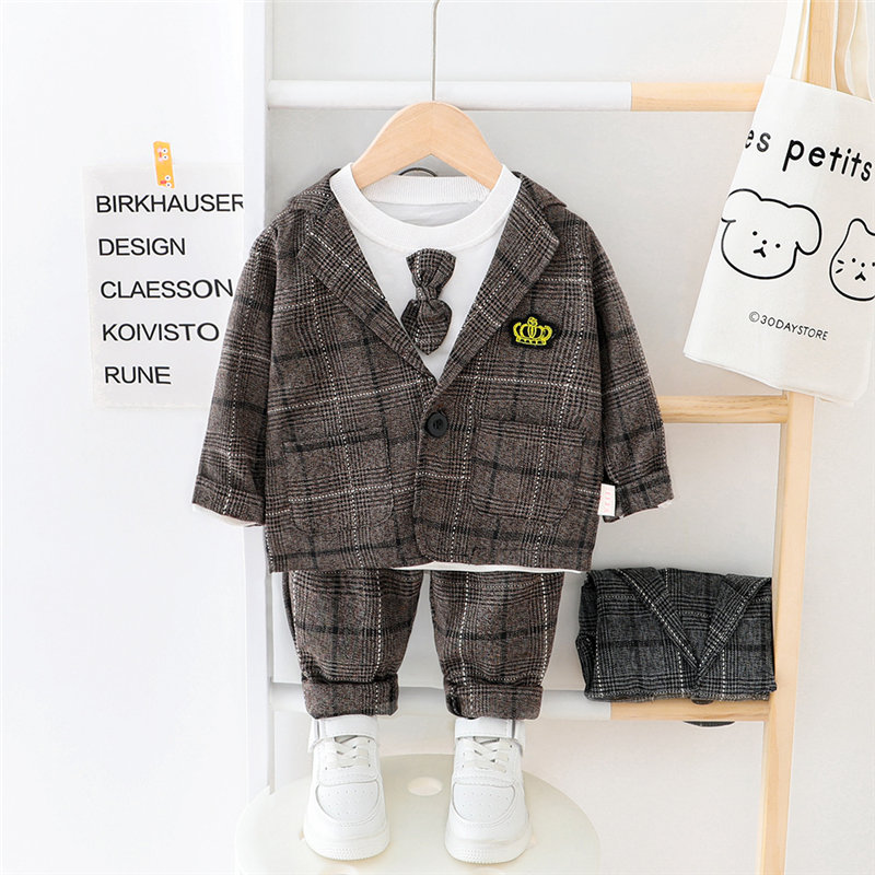 柔らかく、通気性があり、肌に優しい男の子スーツセットです。