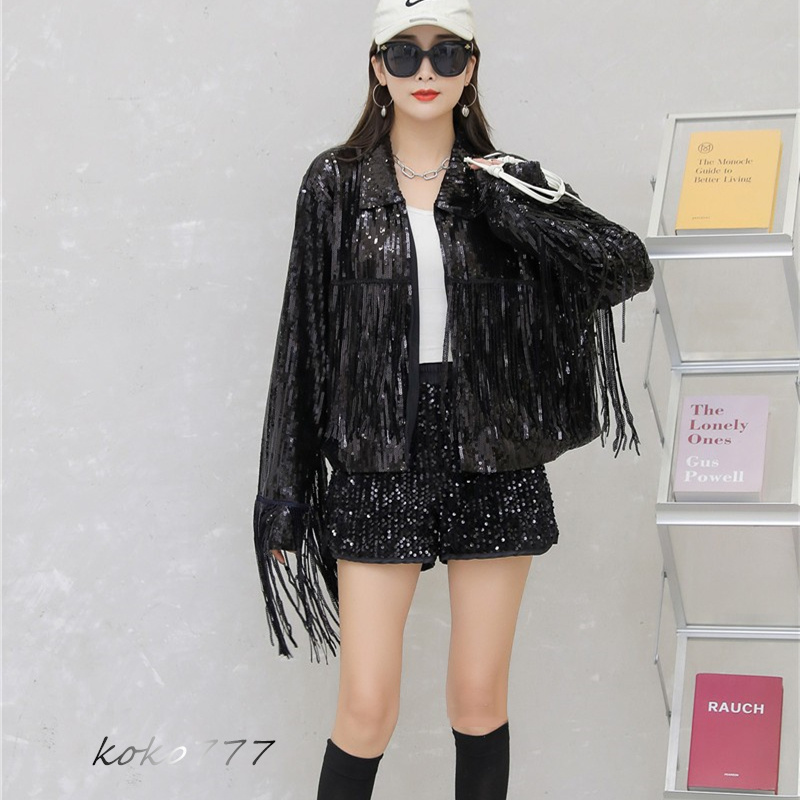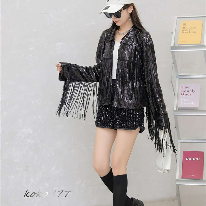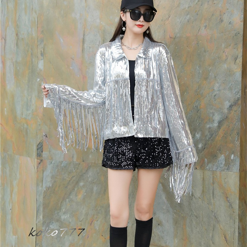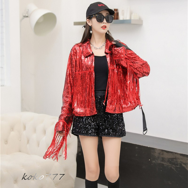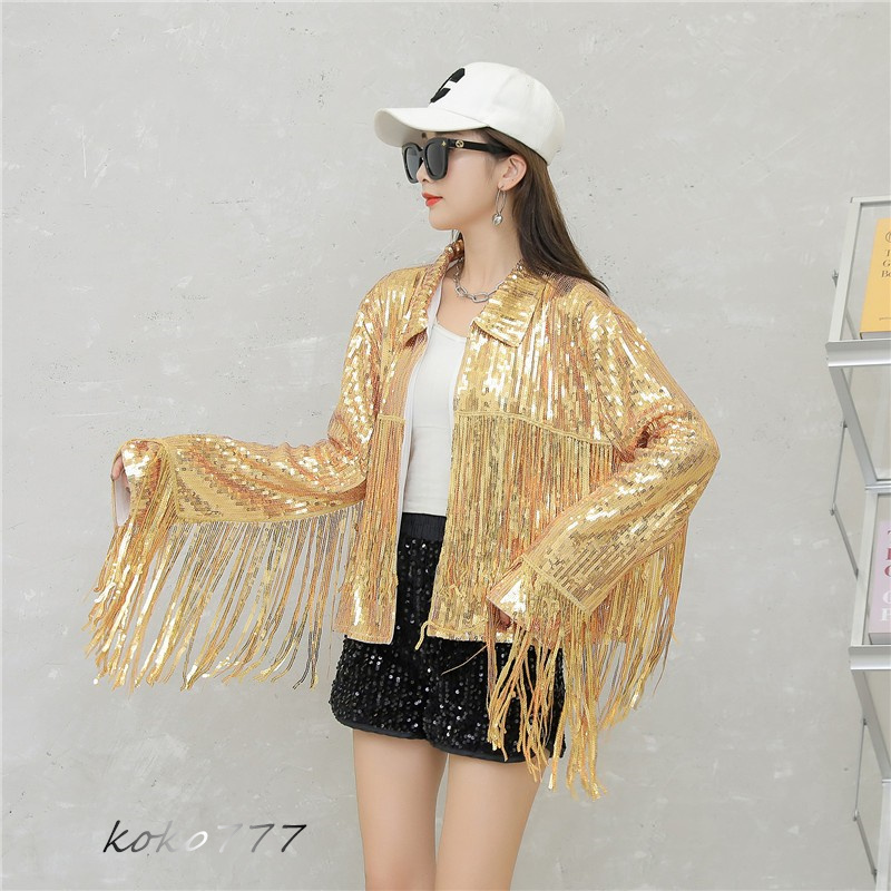 ジャケット レディースジャケット コート スパンフリンジ ダンスウェア ヒップホップ 部活 女子上着 チアガール 発表会 カジュアル 学園祭 アウター